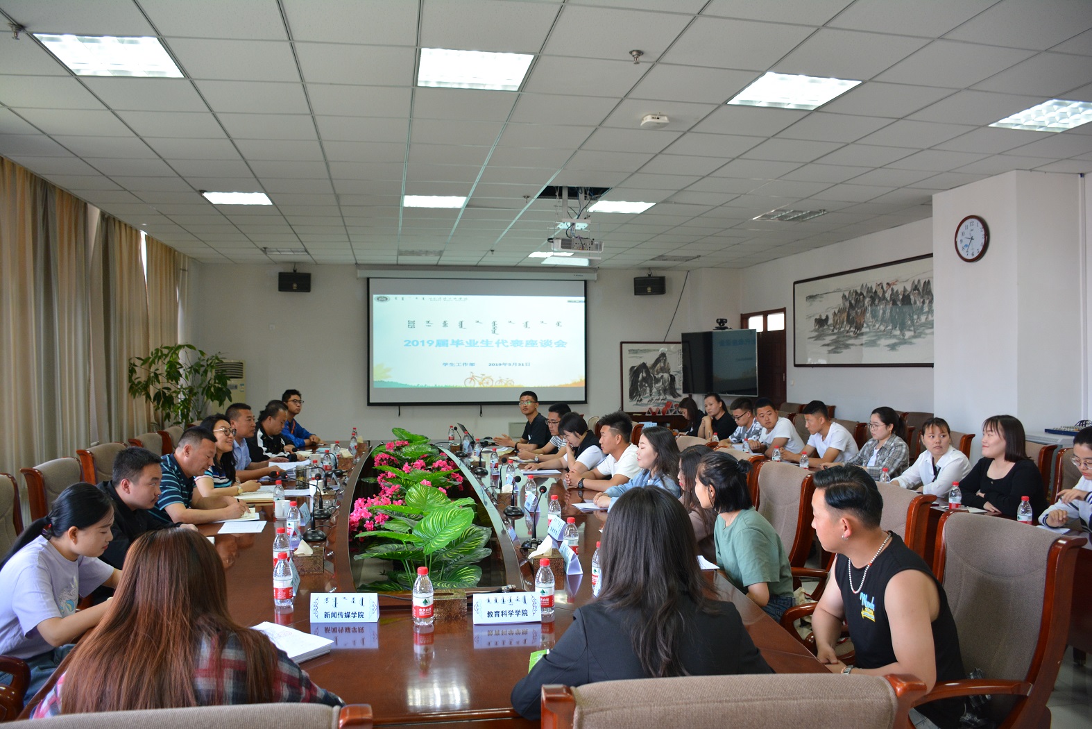学生工作部部长杨福梅、副处长陈青春、就业指导中心包仓处长与应届毕业生代表召开毕业生座谈交流会,副处长陈青春主持会议。师生共同就毕业典礼、毕业生离校、毕业生跳蚤市场等内容进行了深入的探讨。