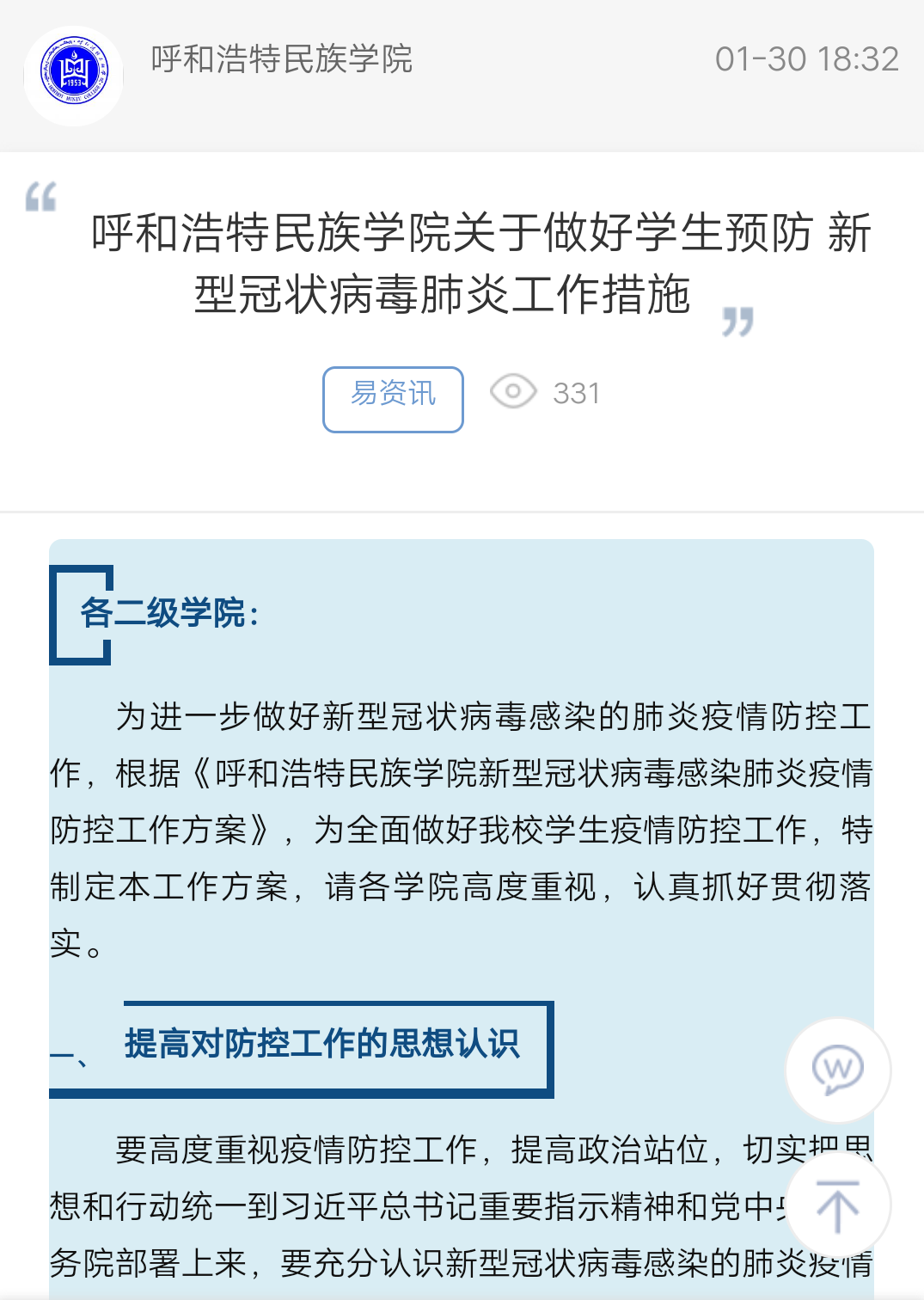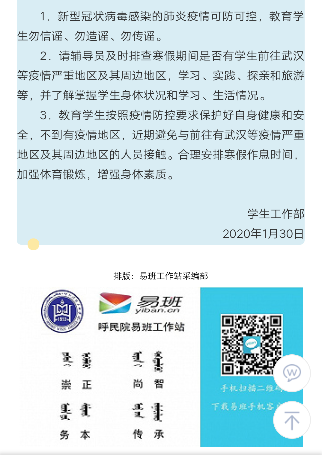 MILE米乐集团关于做好学生预防 新型冠状病毒肺炎工作措施