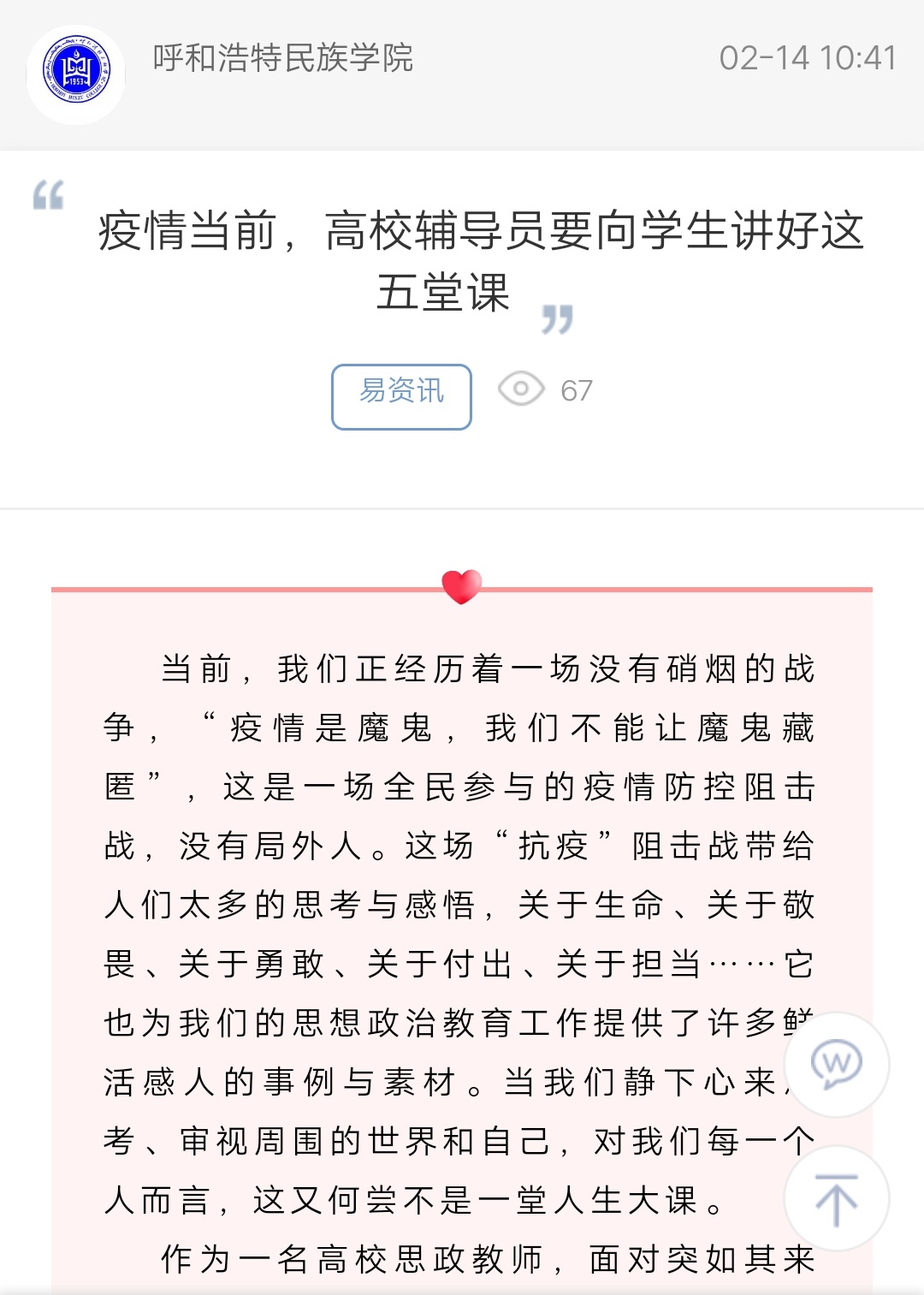 疫情当前,高校辅导员要向学生讲好这五堂课