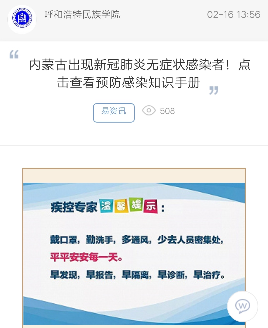 内蒙古出现新冠肺炎无症状感染者!点击查看预防感染知识手册