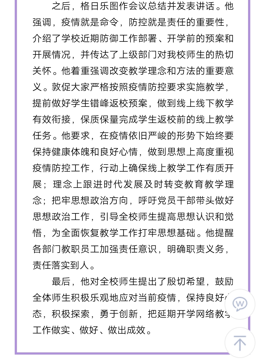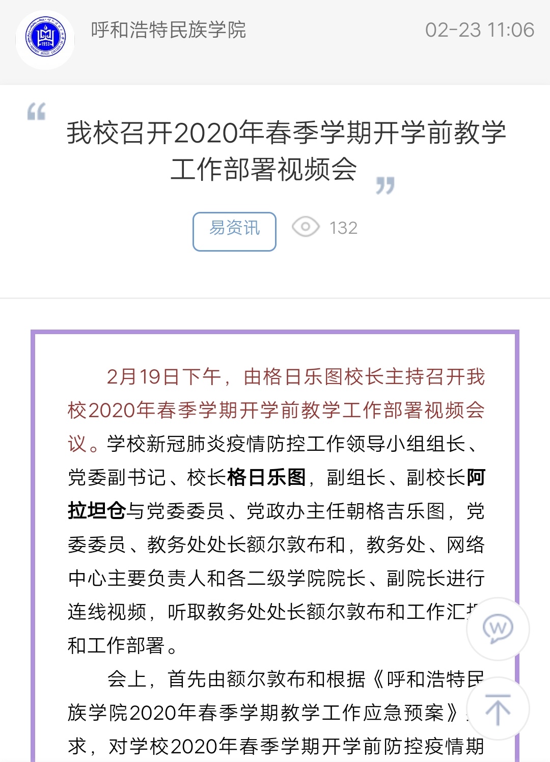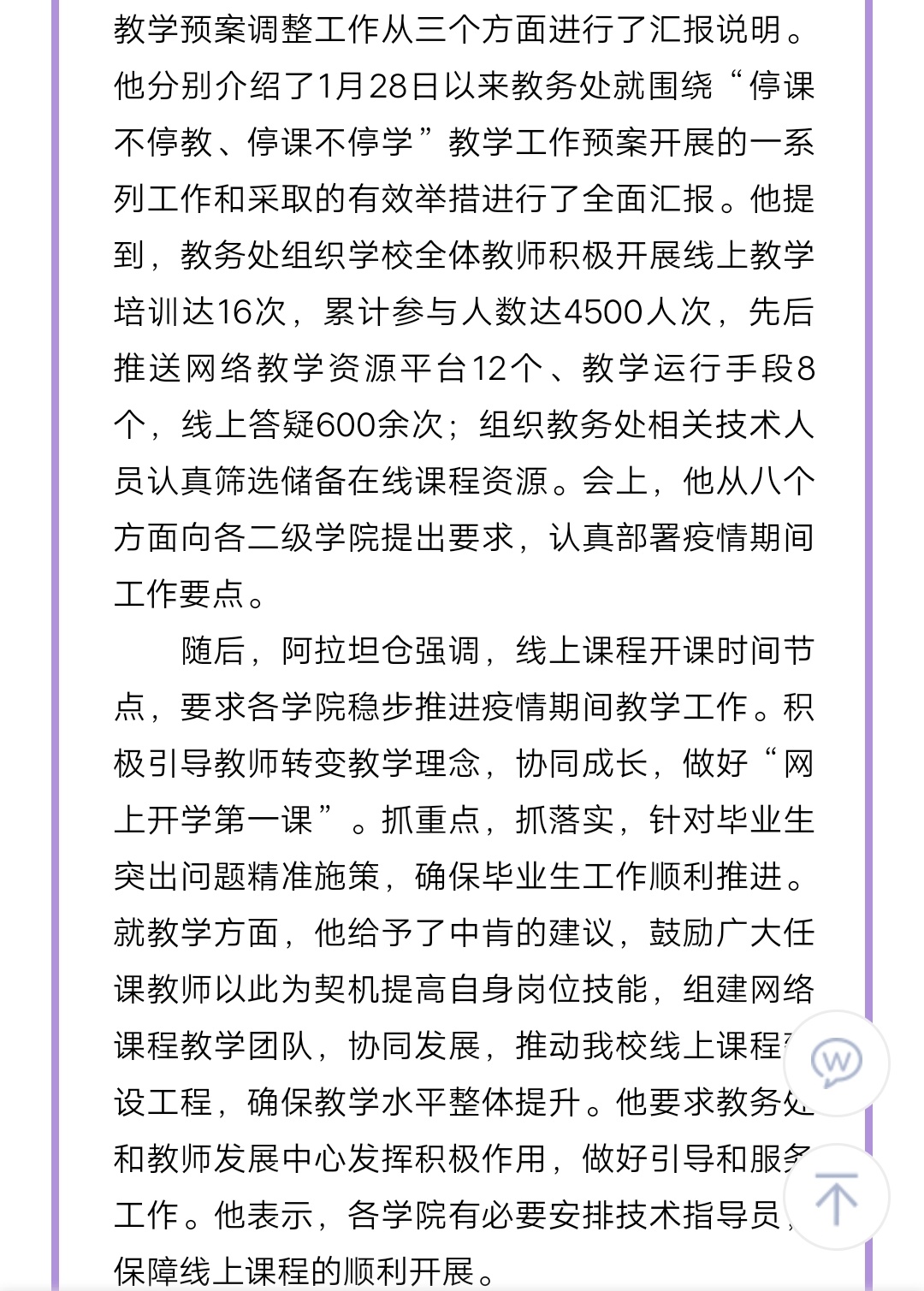 米乐官网召开2020年春季学期开学前教学工作部署视频会