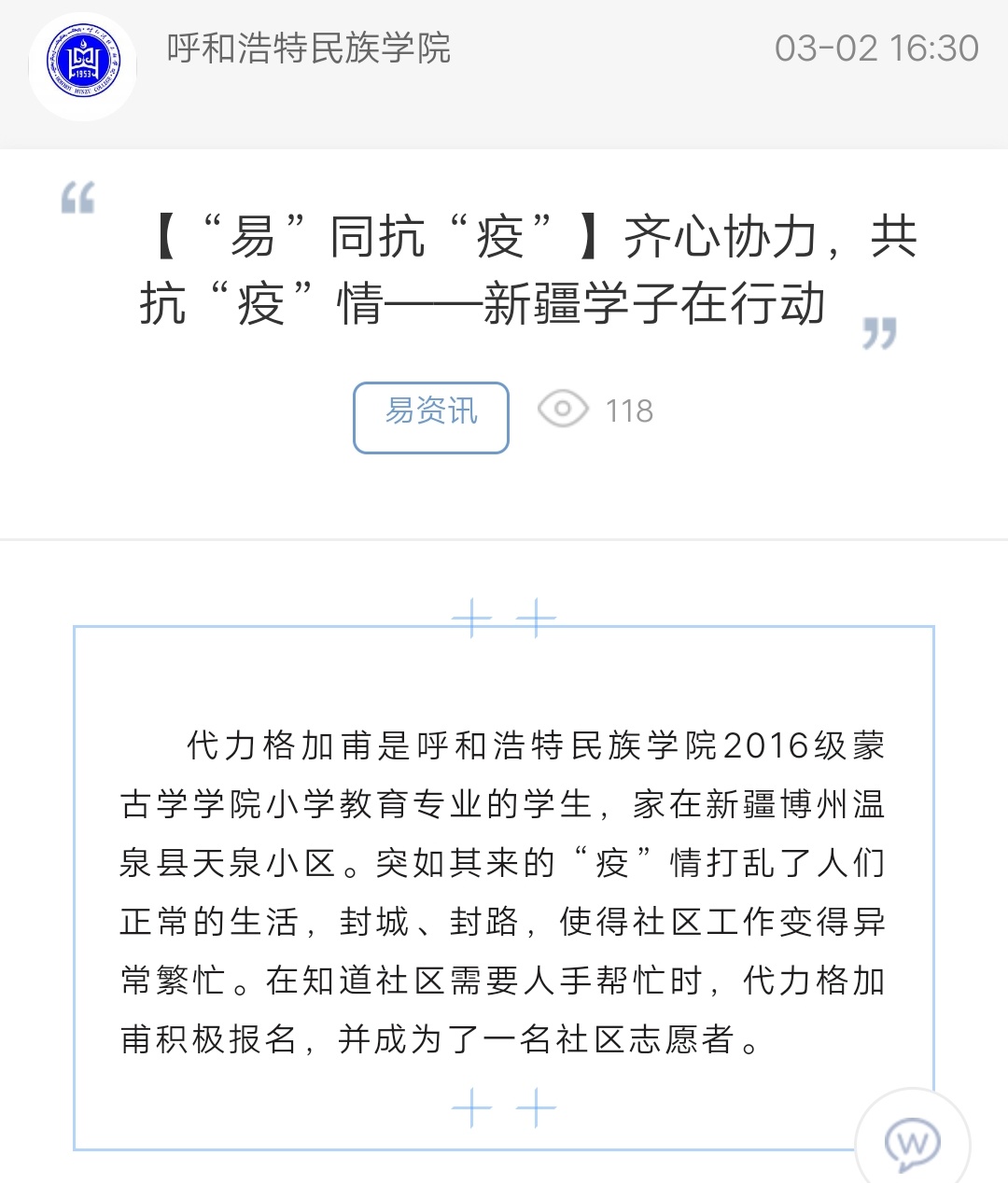 【“易”同抗“疫”】齐心协力,共抗“疫”情——新疆学子在行动