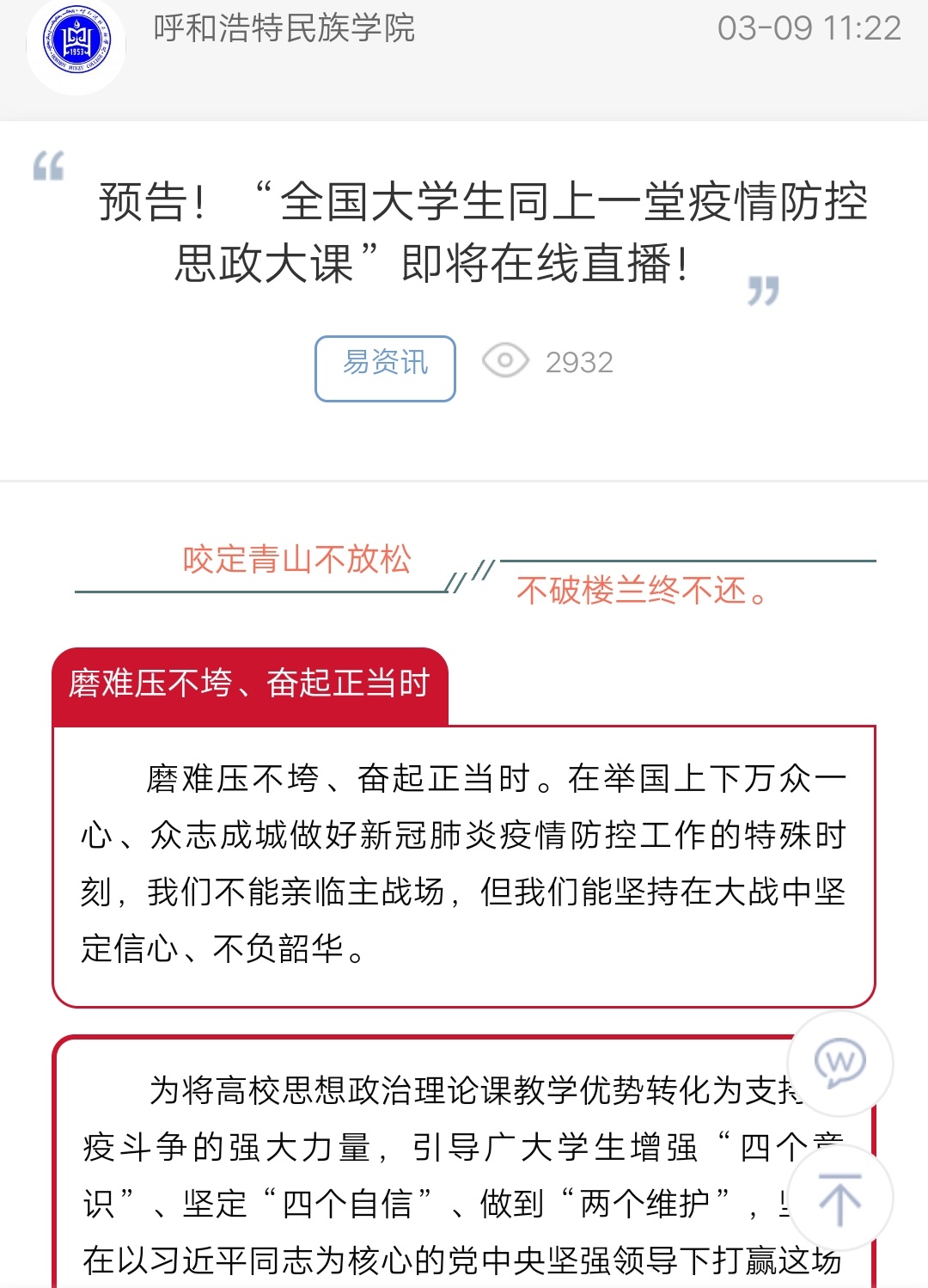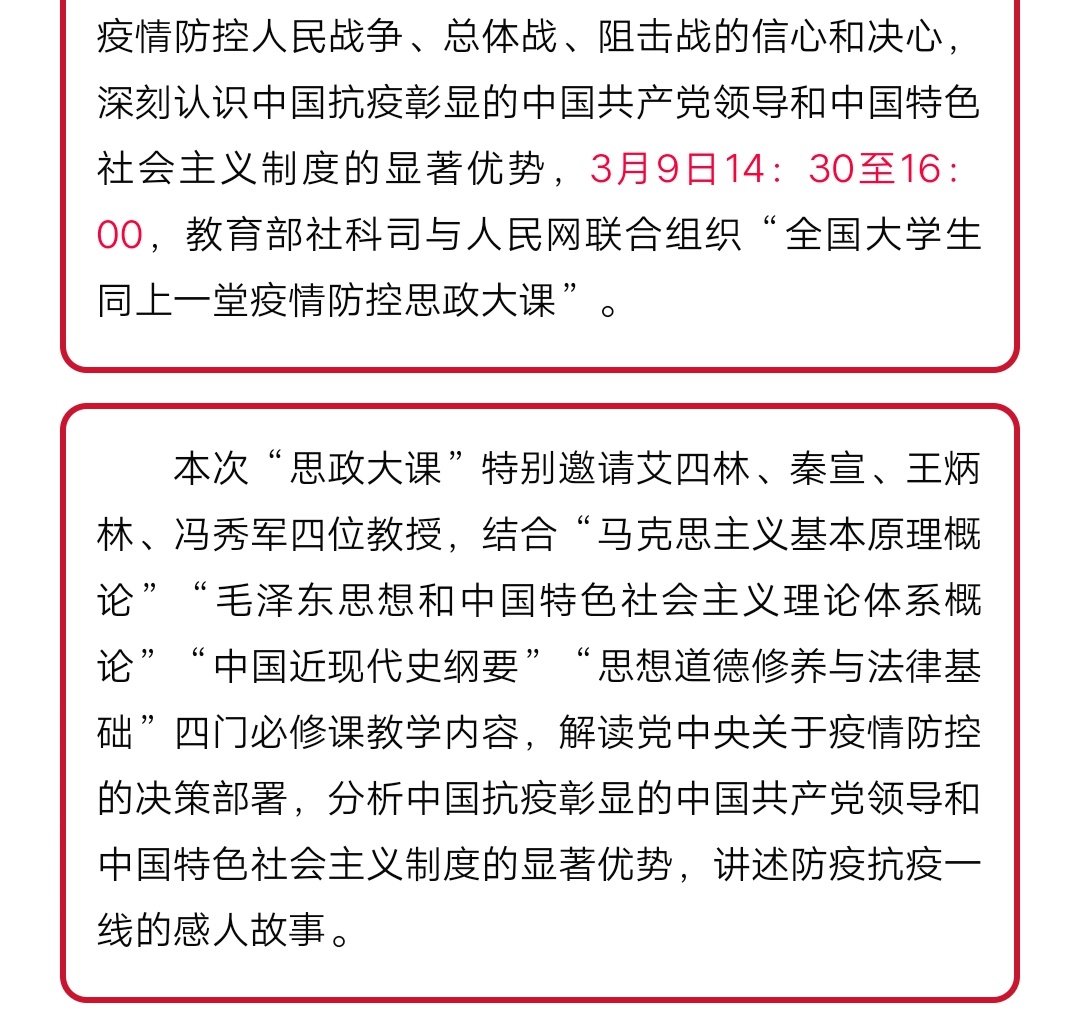 预告!“全国大学生同上一堂疫情防控思政大课”即将在线直播!