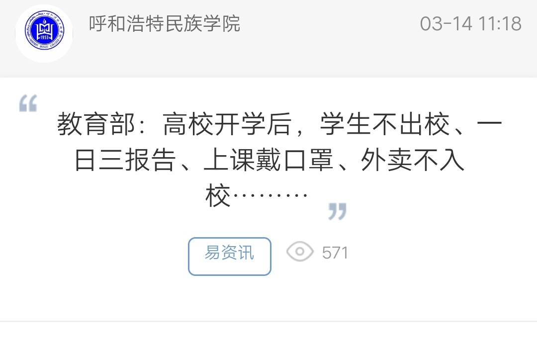 教育部:高校开学后,学生不出校、一日三报告、上课戴口罩、外卖不入校………
