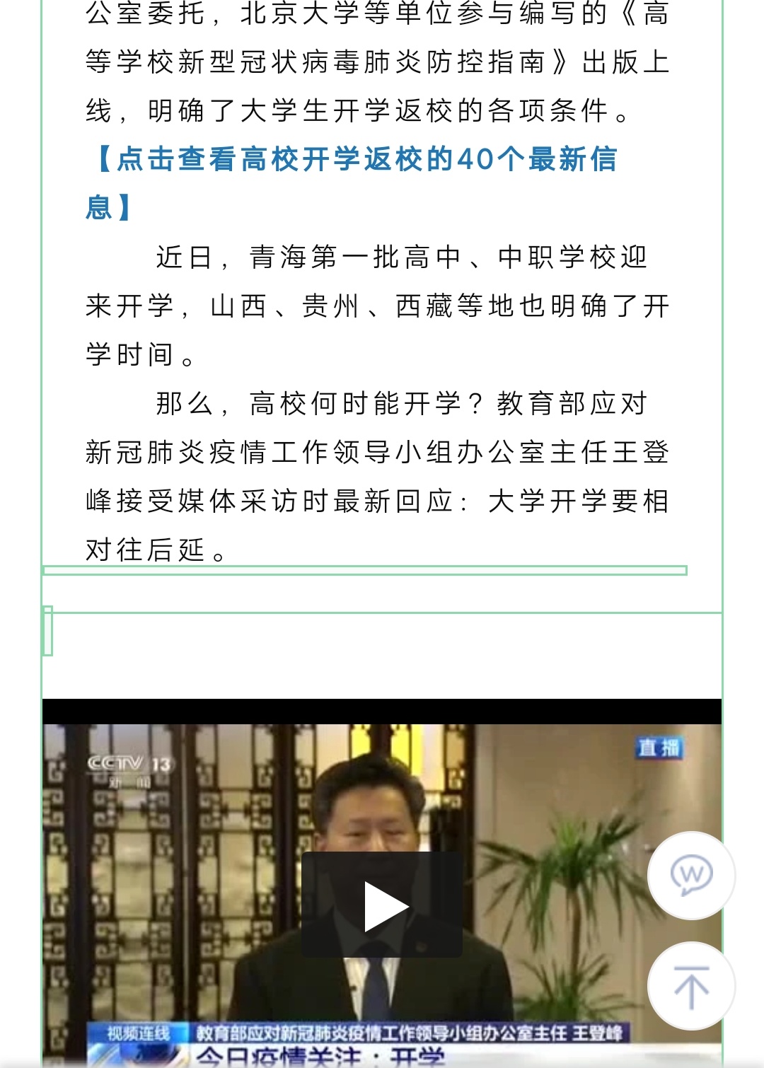 下一条:教育部:高校开学后,学生不出校、一日三报告、上课戴口罩、外卖不入校………