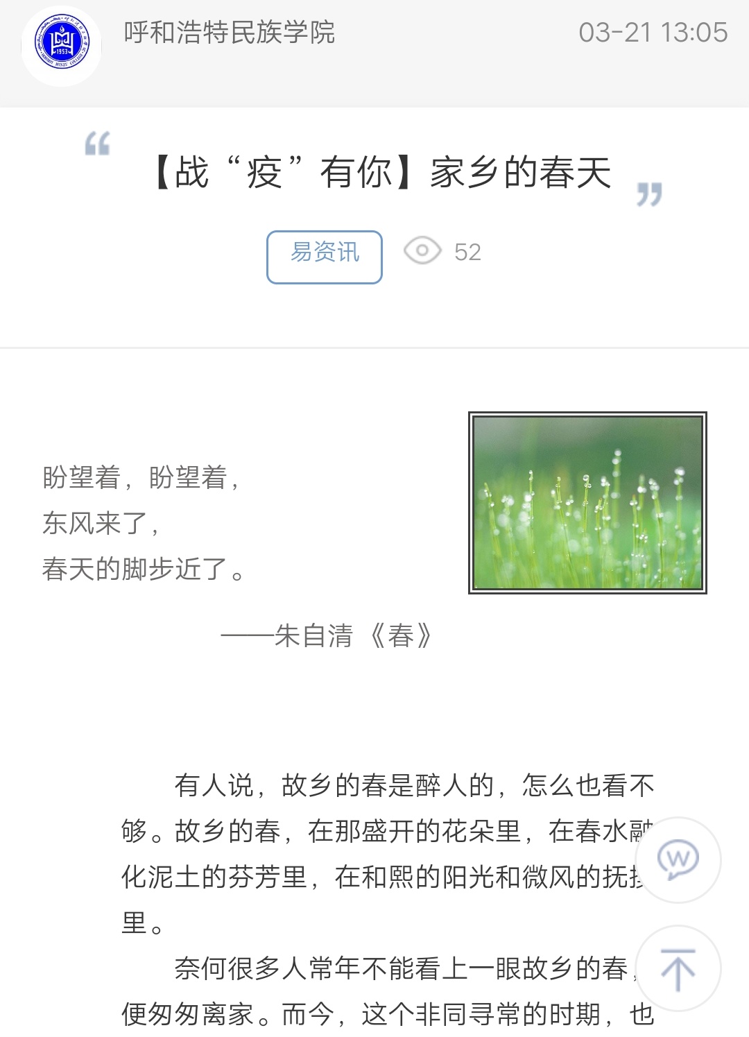 【战“疫”有你】家乡的春天
