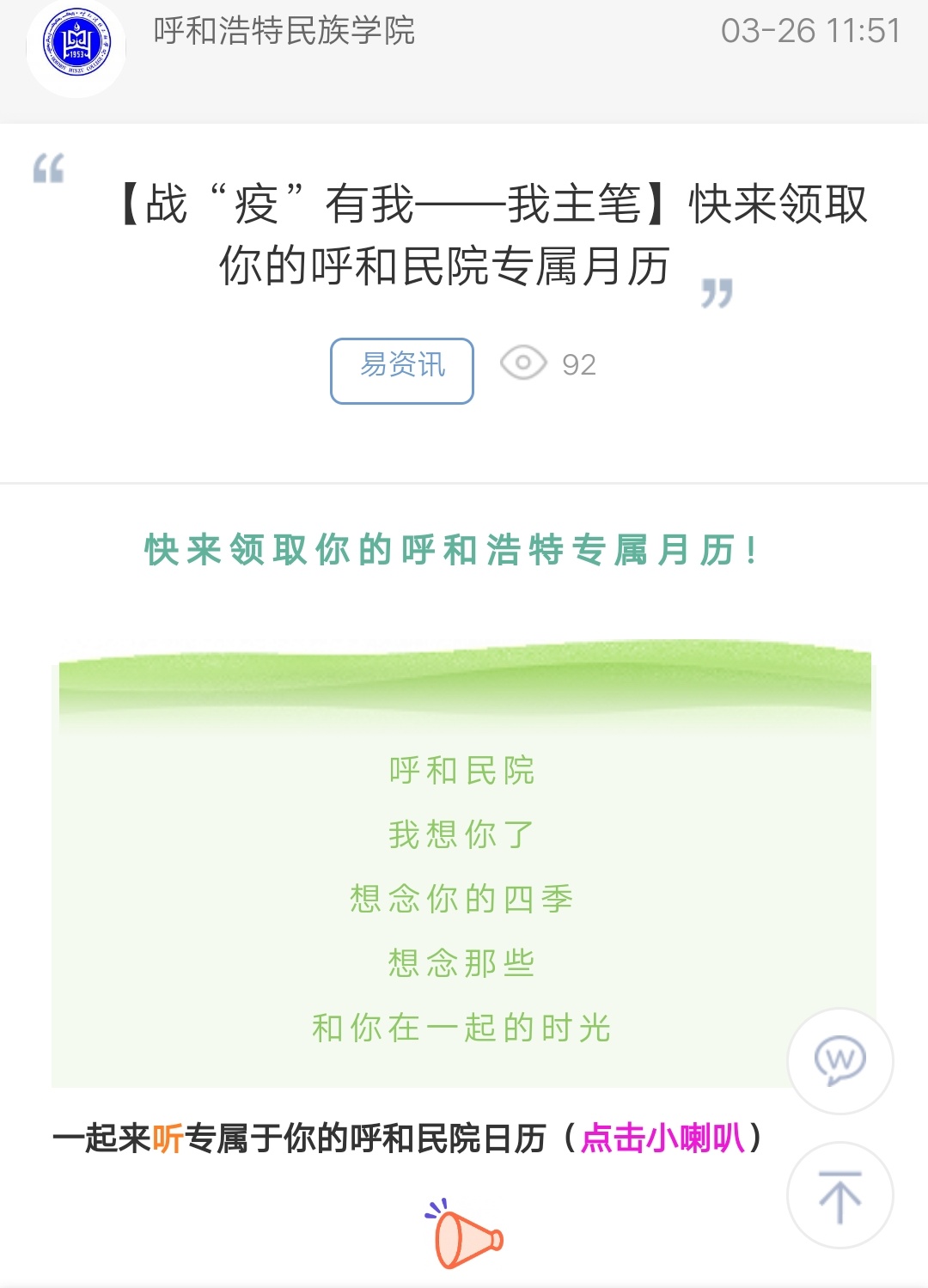 【战“疫”有我——我主笔】快来领取你的呼和民院专属月历