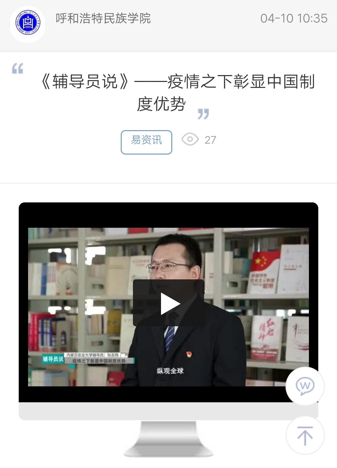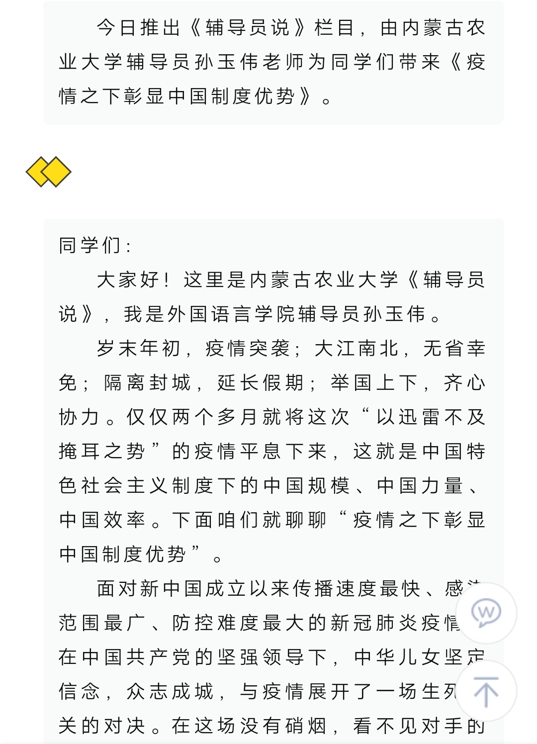 《辅导员说》——疫情之下彰显中国制度优势