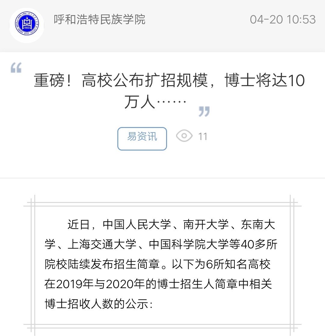 重磅!高校公布扩招规模,博士将达10万人……