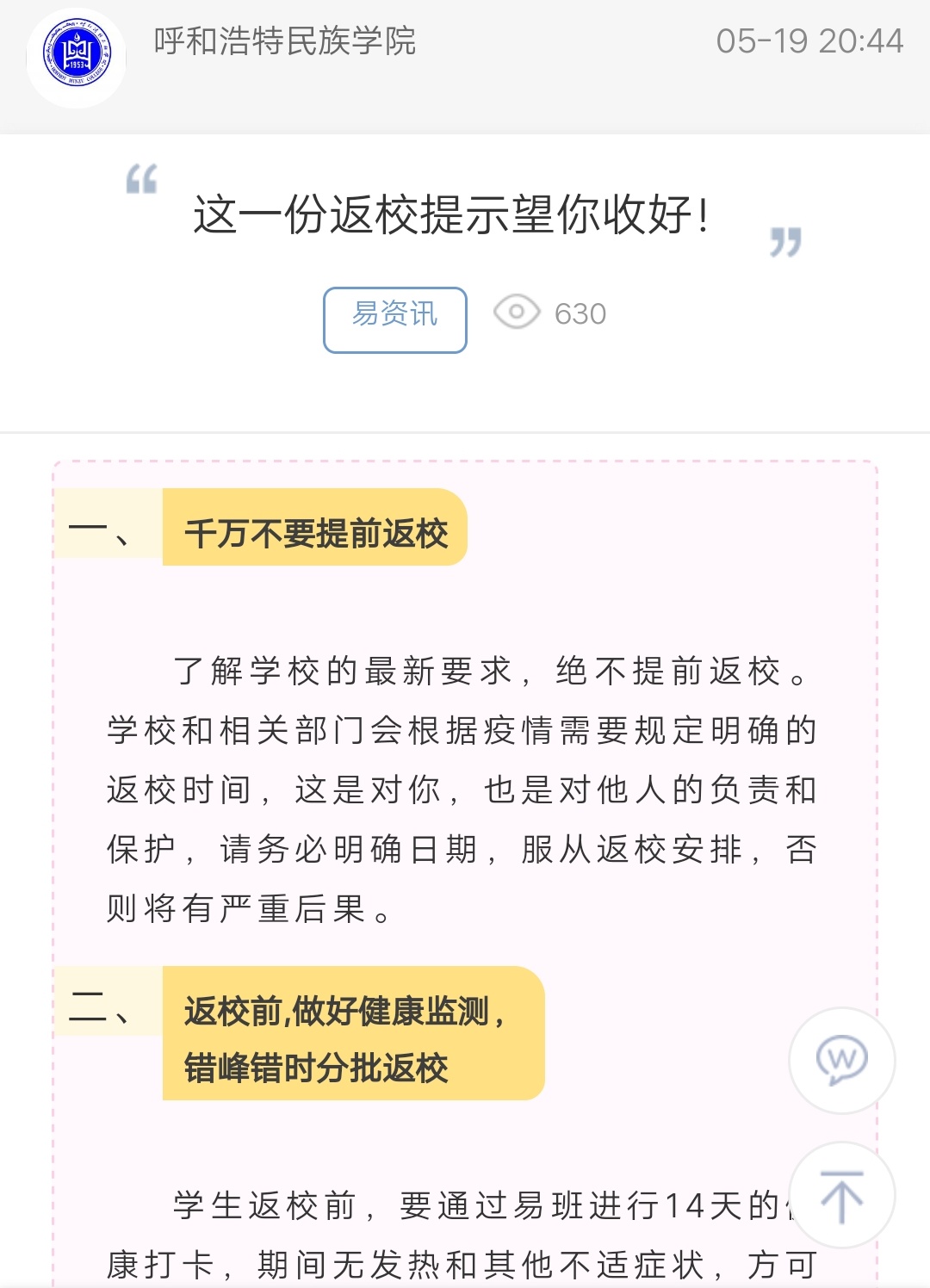 这一份返校提示望你收好!