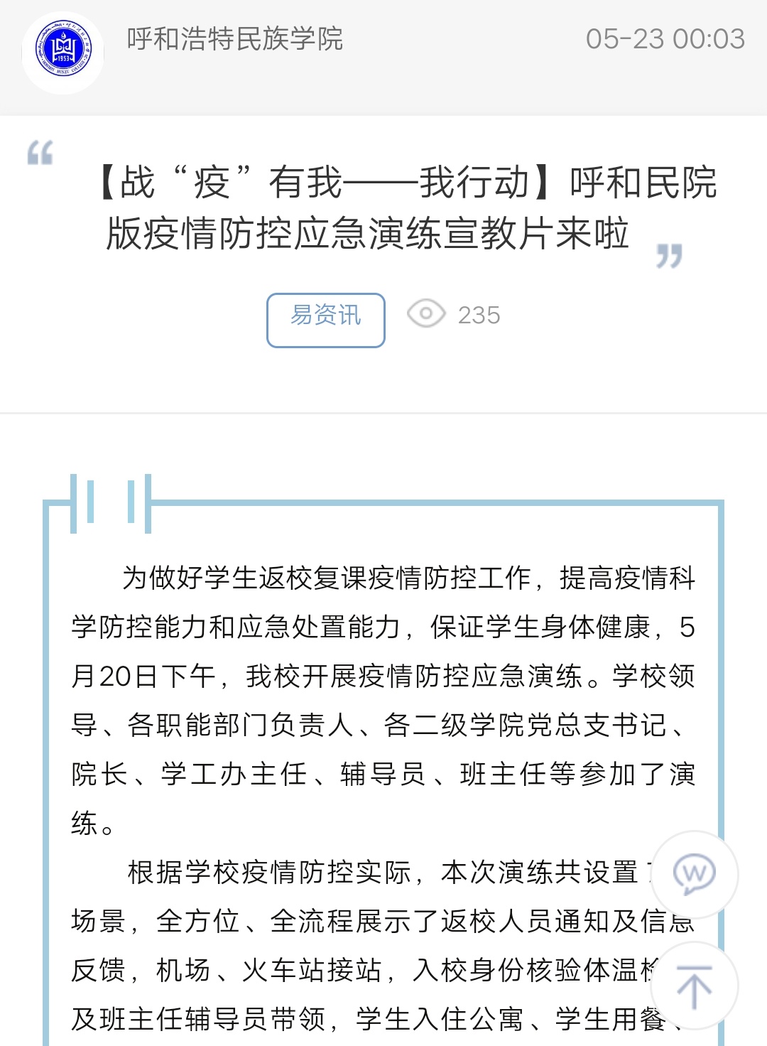 【战“疫”有我——我行动】呼和民院版疫情防控应急演练宣教片来啦
