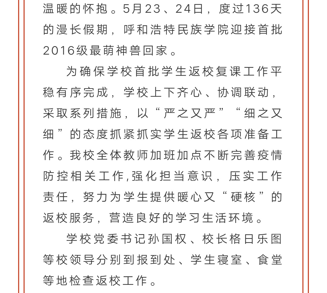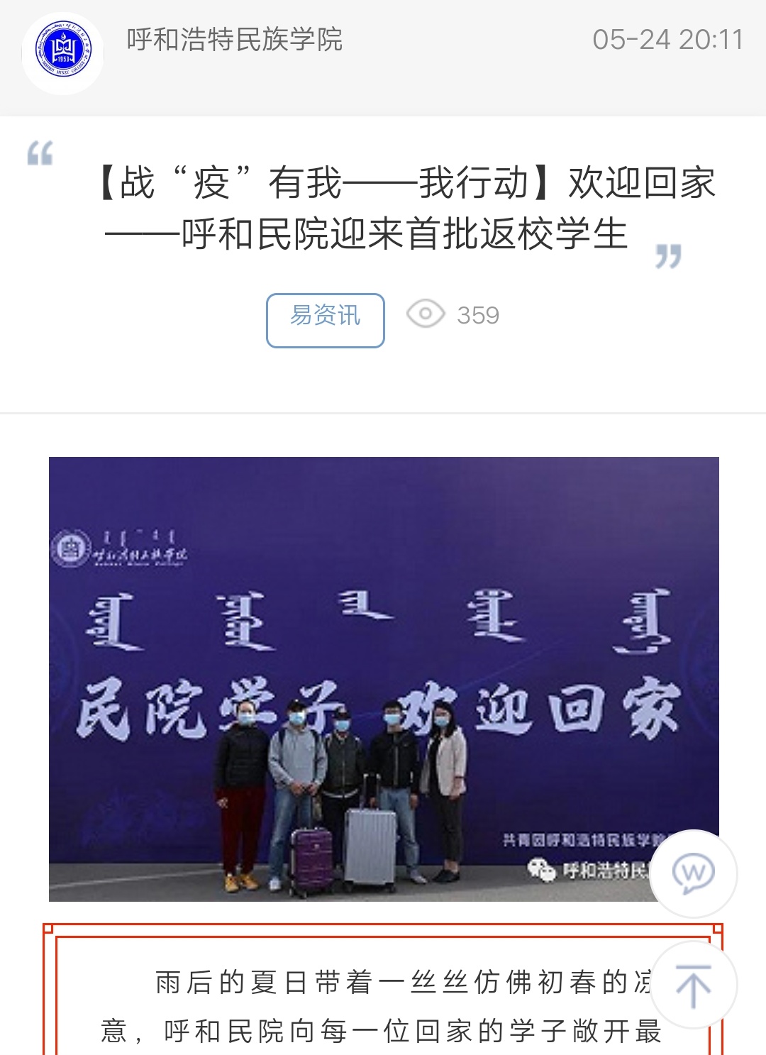 【战“疫”有我——我行动】欢迎回家——呼和民院迎来首批返校学生