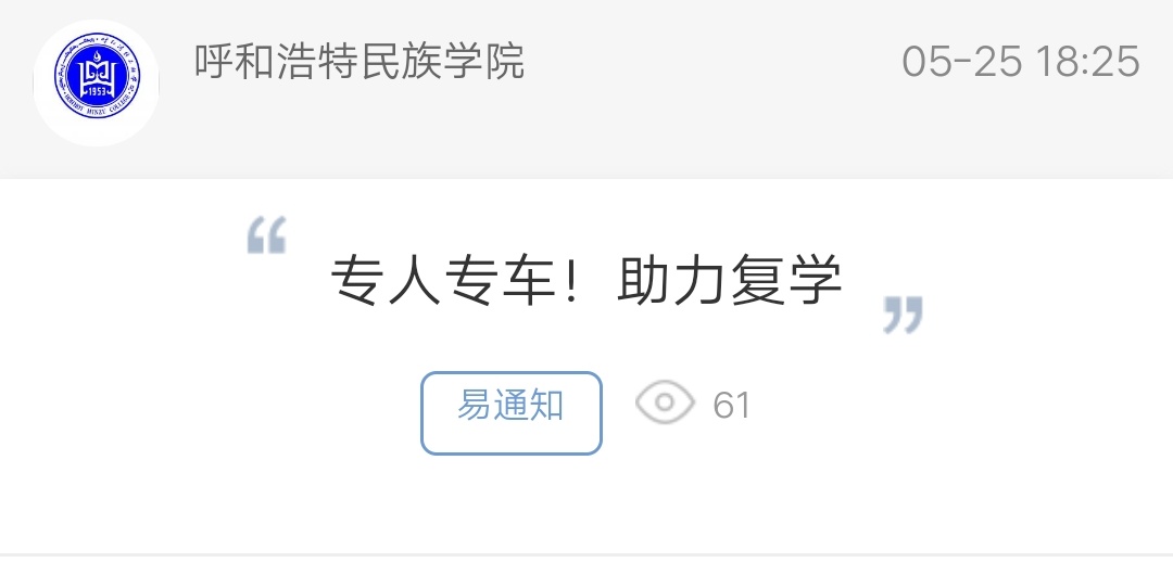 下一条:【战“疫”有我——我行动】欢迎回家——呼和民院迎来首批返校学生