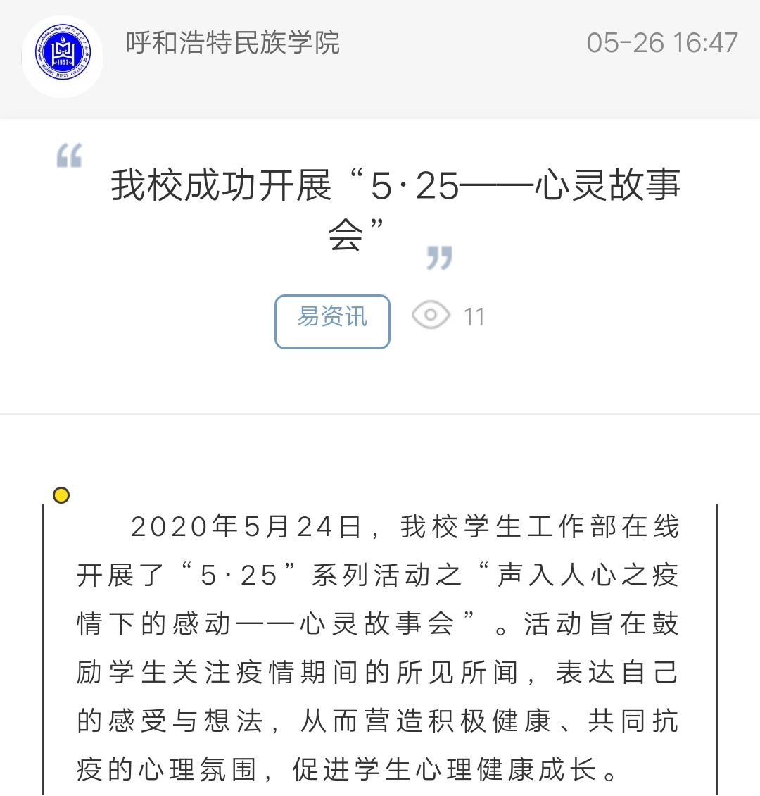 上一条:5·25心理健康教育——敬畏生命、健康第一;不负韶华、砥砺前行