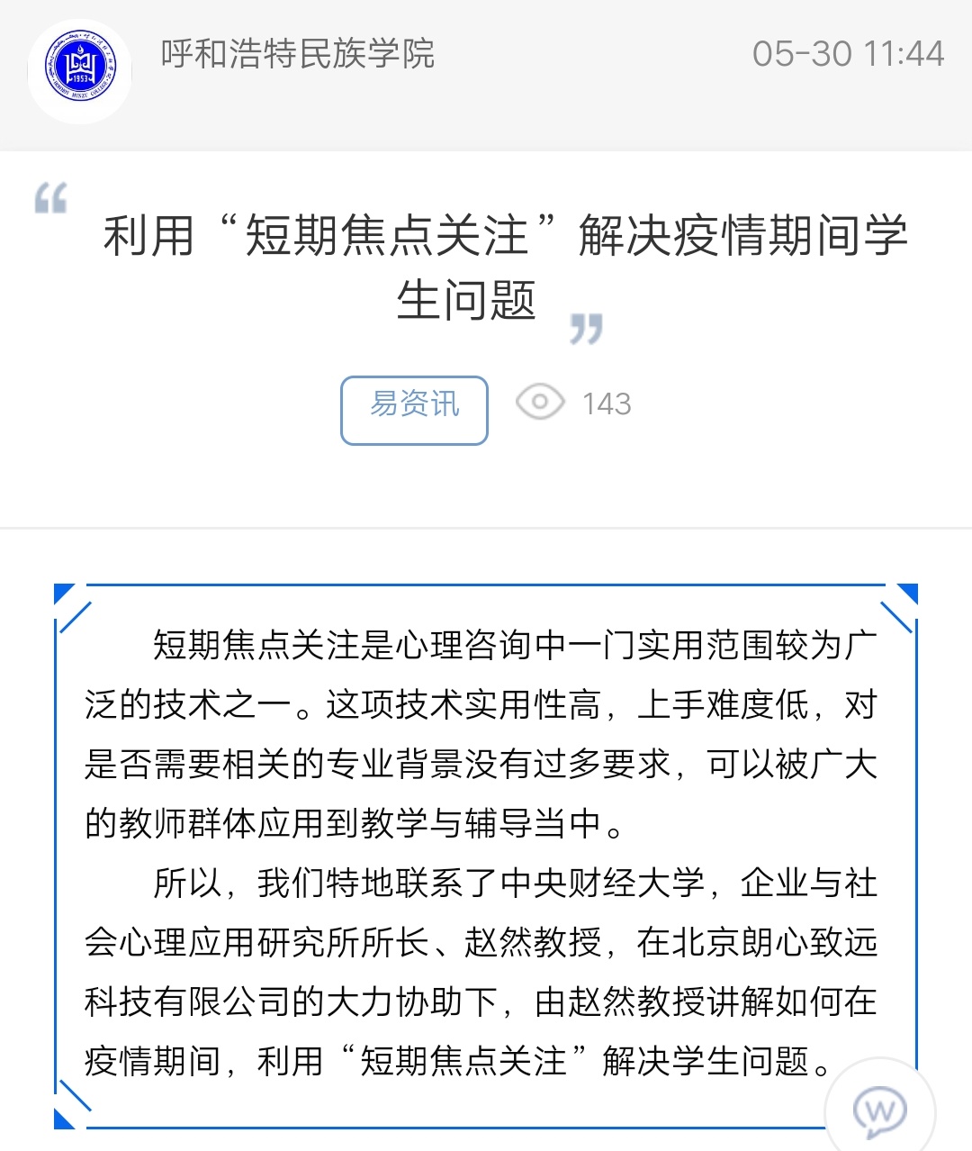 利用“短期焦点关注”解决疫情期间学生问题