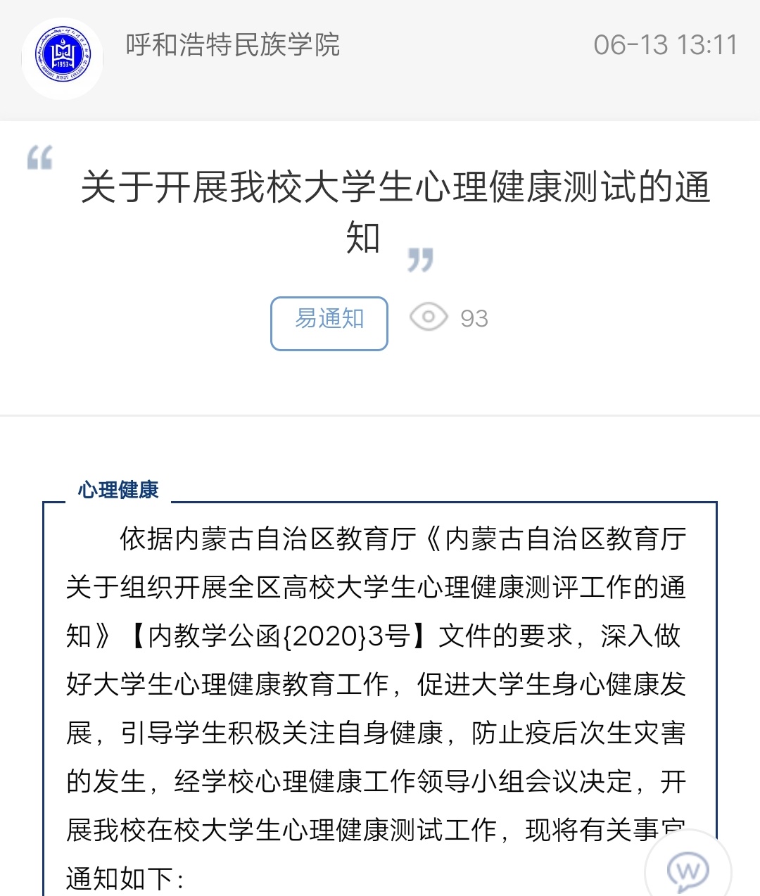 关于开展米乐官网大学生心理健康测试的通知