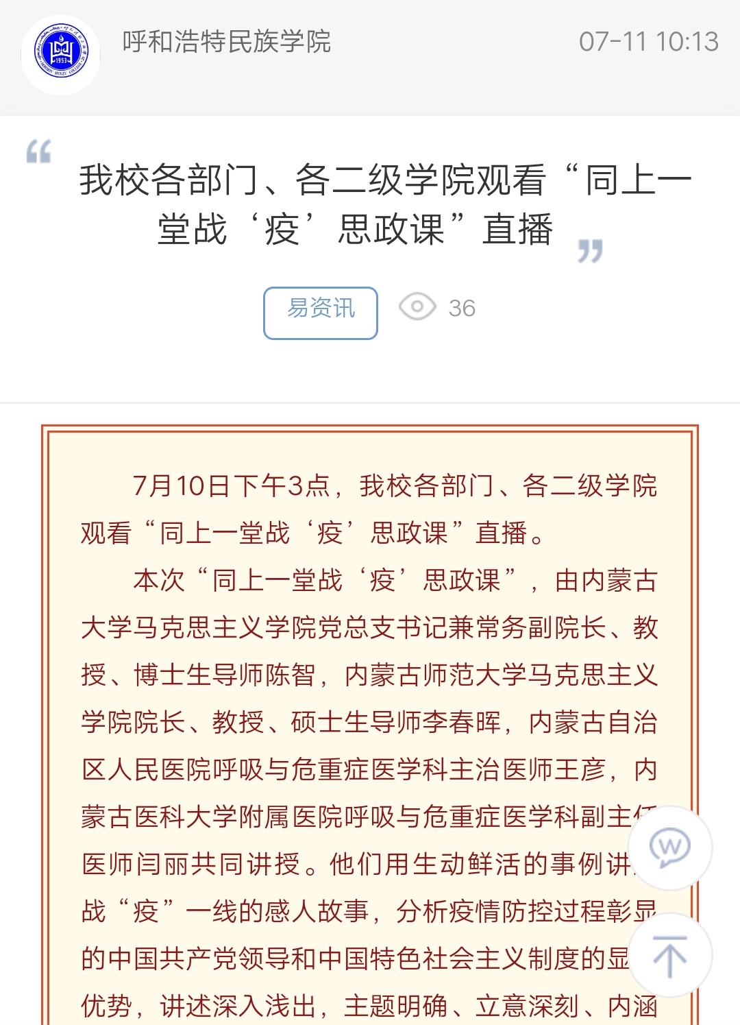 米乐官网各部门、各二级学院观看“同上一堂战‘疫’思政课”直播
