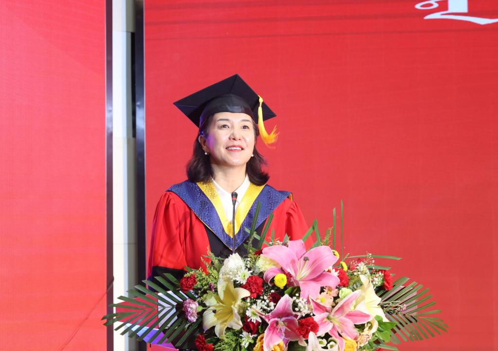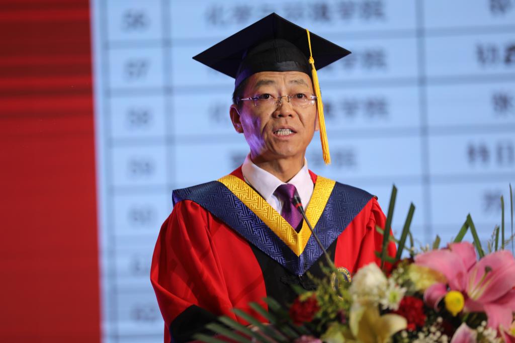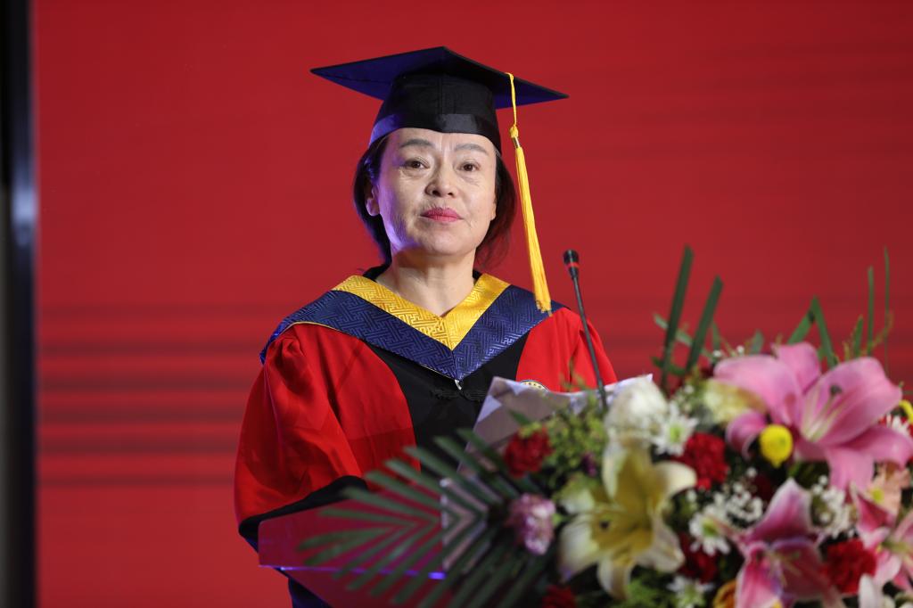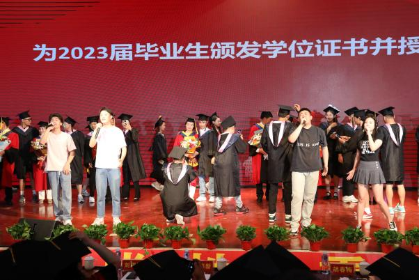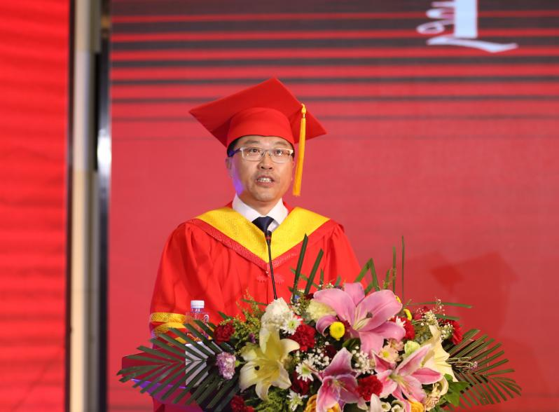 韩伟新在致辞中代表学校向圆满完成学业,即将踏上人生新征程的2023届全体毕业生表示热烈的祝贺,向悉心培育同学们的老师和家长致以衷心的感谢。他勉励同学们一要厚植爱国情怀,坚定信念、志存高远,做新时代民族复兴中勇往直前的筑梦人;二要锤炼实干之勇,脚踏实地、艰苦奋斗,做中国式现代化勇毅前行的建设者;三要担当团结之责,爱我中华、守望相助,做铸牢中华民族共同体意识的“播种者”和推动者。并祝愿所有毕业生此去繁花似锦,归来仍是少年!