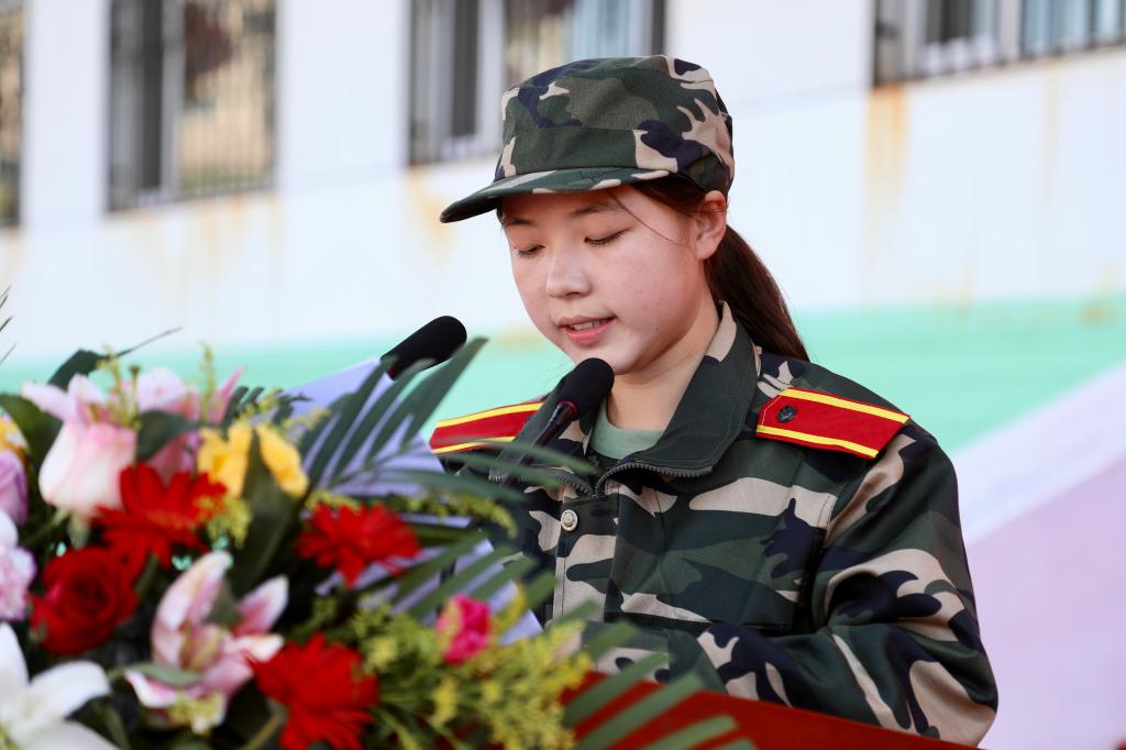 学生工作部部长(武装部部长)海霞宣布军训各连编排情况