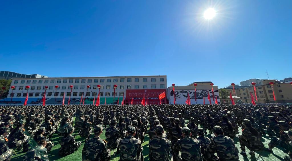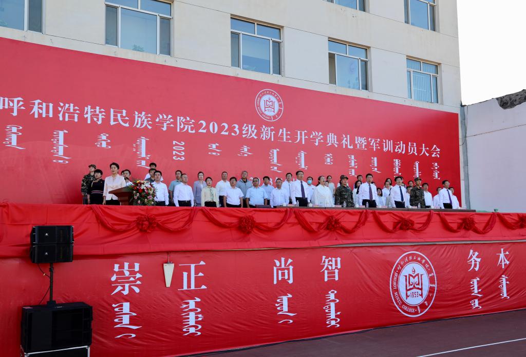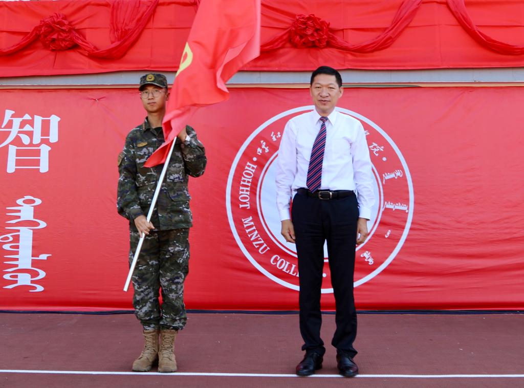9月5日上午,米乐官网2023级新生开学典礼暨军训动员大会在南院操场举行。学校党委书记刘九万出席大会并为军训团授旗。党委副书记、校长韩伟新出席开学典礼并致辞。副校长纳丽娜主持大会。武警内蒙古总队机动支队机动二大队少校大队长王艳波,武警内蒙古总队机动支队机动二大队机动五中队上尉政治指导员崔斌,党委委员、纪委书记、监察专员王冬梅,党委委员、副校长高喜天,党委委员、副校长刘瑞鸿出席大会。各职能部门负责人,各二级学院党总支书记、院长、学工办主任、辅导员、新生班主任以及全体2023级学生共计2600余人参加了大会。