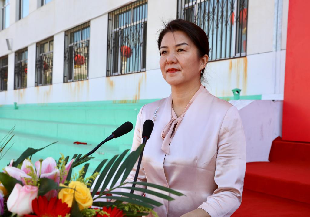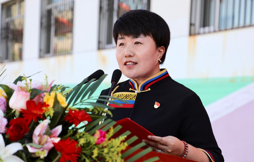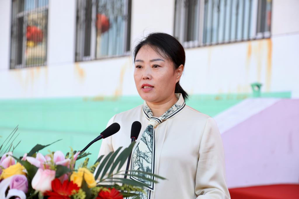 学前教育学院副院长朱乌英嘎代表全体教师对2023级新同学深情寄语。她勉励同学们在四年的大学生活中要刻苦学习,塑造优良品格;打牢基础,夯实专业;坚持知行合一,练就过硬本领,争做笃实力行的有为学子。