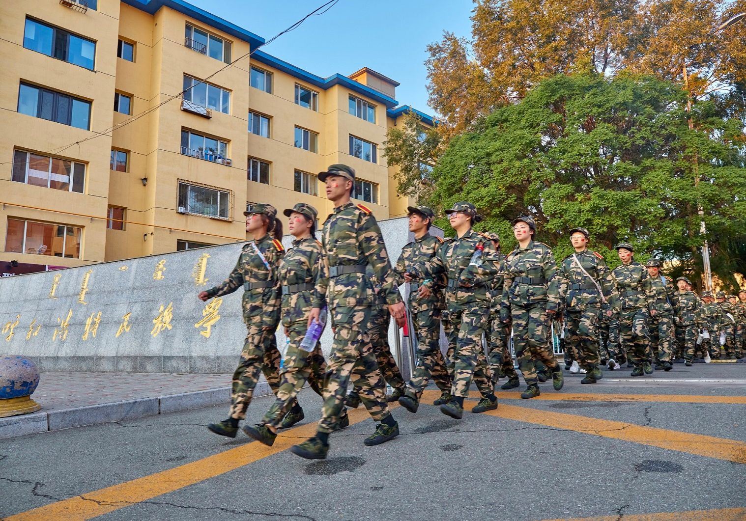 军号响起,军歌嘹亮。2023年9月16日,是我国第23个全民国防教育日。结合2023级新生入学教育安排,学校与呼和浩特市全民国防教育社会发展中心联合开展了“行走的思政课”大型徒步拉练国防教育活动,旨在构建实践育人大格局,通过“大思政课”的缩影和有效举措,让学校育人工作更加有“知”有“为”,让大学生思想政治教育更加丰富多彩。