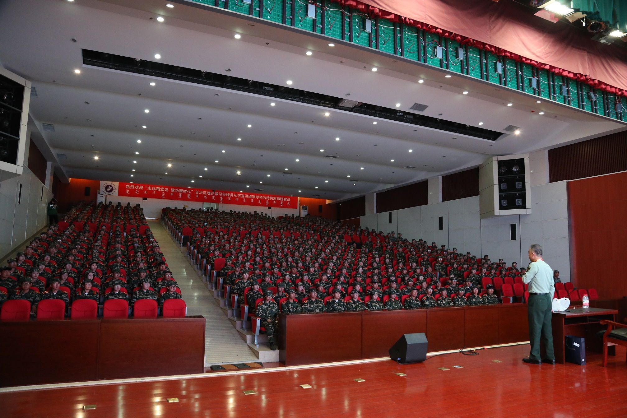 王曙光大校用情景讲述等形式,慷慨激昂地述说了他的先进事迹,全场新生为之动容。他在1987年11月的作战行动中勇敢顽强,不慎触雷炸断双脚,荣立一等战功。伤愈后一直在原北京军区所属部队服役。但他身残志坚,以坚韧不拔的毅力,努力克服伤残带来的不便,坚持工作,发奋苦读。2017年八一建军节庆祝中国人民解放军建军90周年大会上,作为全军49名现役英模代表之一,在人民大会堂参加了国防部组织的纪念活动,并接受了总书记和总部首长的接见。他用自己的亲身经历,中外战争案例以及战斗英雄的故事,让同学们进一步理解了“哪有什么岁月静好,只是有人为你负重前行”这句话的深刻含义。