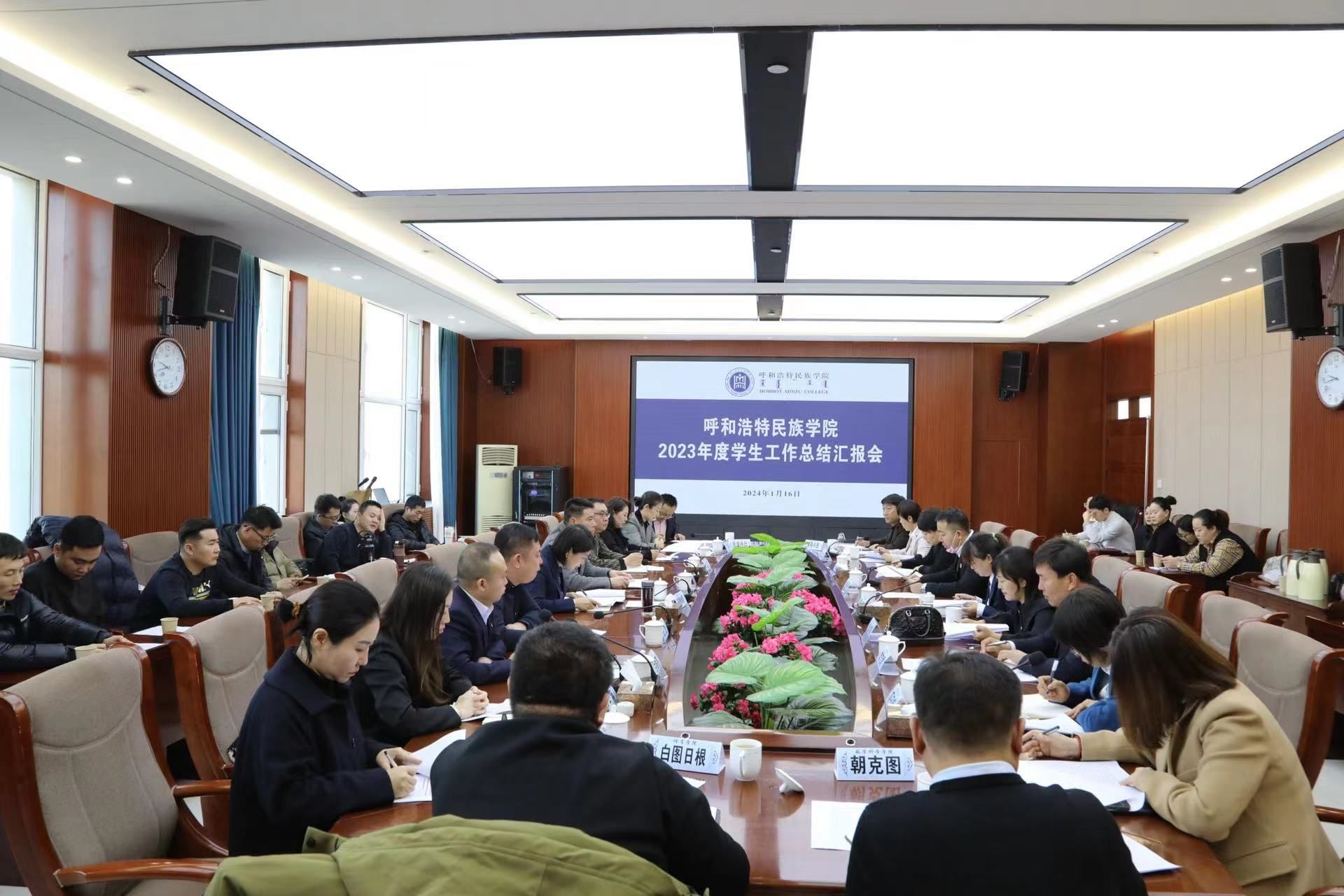 1月16日上午,学校在综合楼11楼会议室召开了2023年度学生工作总结汇报会。校党委副书记格根哈斯出席会议。学生工作部(处)全体人员、各学院党总支副书记、组织员和全体辅导员参会。会议由学生工作部副部长白永泉主持。