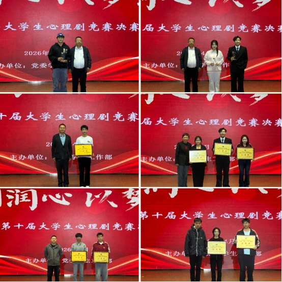 经评委组从主题立意、剧本创意、现场表现力、心理教育价值四个维度综合评审,大赛奖项揭晓:计算机与信息技术学院《长大》斩获一等奖,化学与环境工程学院《谁杀死了快乐》、新闻传媒学院《异乡的灯》获二等奖,管理学院《村里村外》、音乐与舞蹈学院《别让AI偷走我的旋律》、文学院《破茧的青春》获得三等奖,法学院《赴山海》和智能科学学院《归航》获得优秀奖。管理学院范兆启获得最佳男演员奖,文学院史书姚获得最佳女演员奖,计算机与信息技术学院刘洋赫获得最佳导演奖。