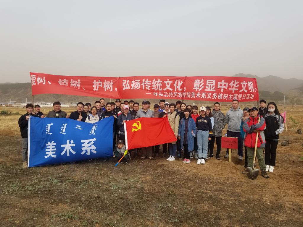 春回大地万物苏,植树添绿正当时。为了大力推进生态文明建设,在广大师生中树立“绿水青山就是金山银山”的生态文明新风尚。4月20日,美术系党总支开展以“爱树、植树、护树”为主题义务植树党日活动。在美术系党总支副书记包旭东、副主任高特木乐的带领下,美术系教师党员、学生党员、入党积极分子以及师生群众赴保合少乡圣水梁参加义务植树活动。