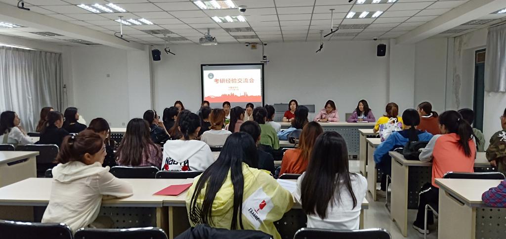 本次会议邀请学院2019年顺利考上研究生的刘阳、康丽梅、高亚倩、姜春雪等4名同学进行经验交流。四名同学依次介绍了自己的考研情况、录取院校、考研心得等,并就院校选择、复习计划、心态调整等方面与学弟学妹进行了分享。与会2020届考研班学生与学姐进行了现场交流,就复习过程中遇到的问题等进行咨询。