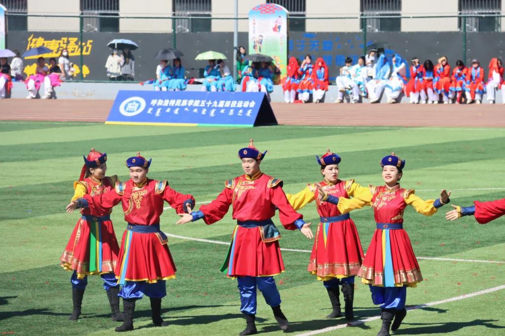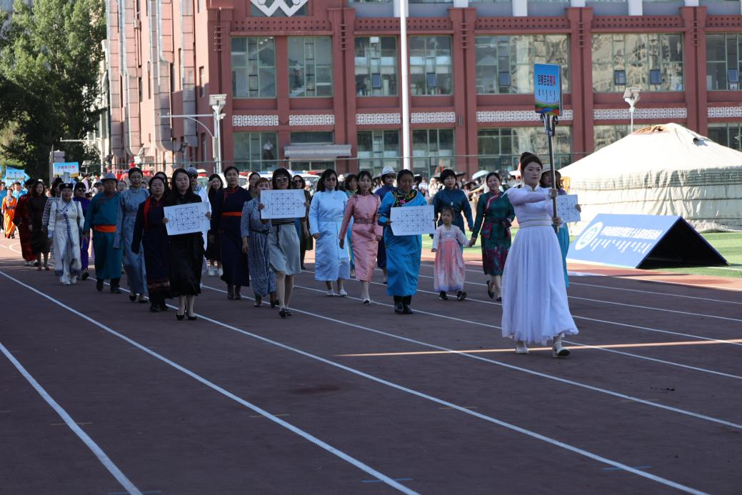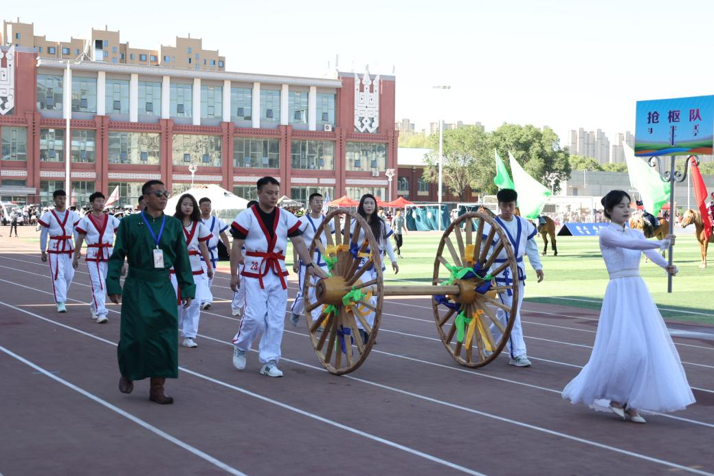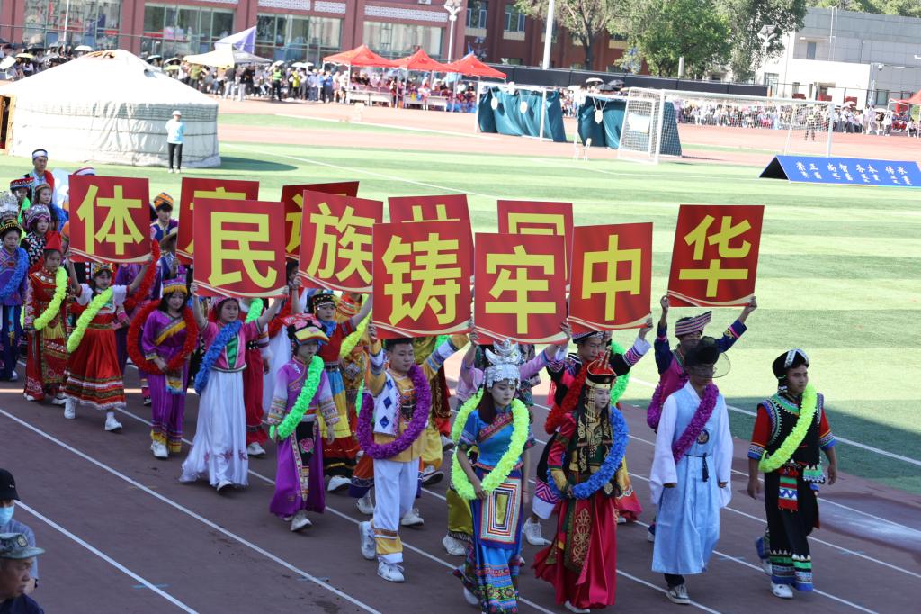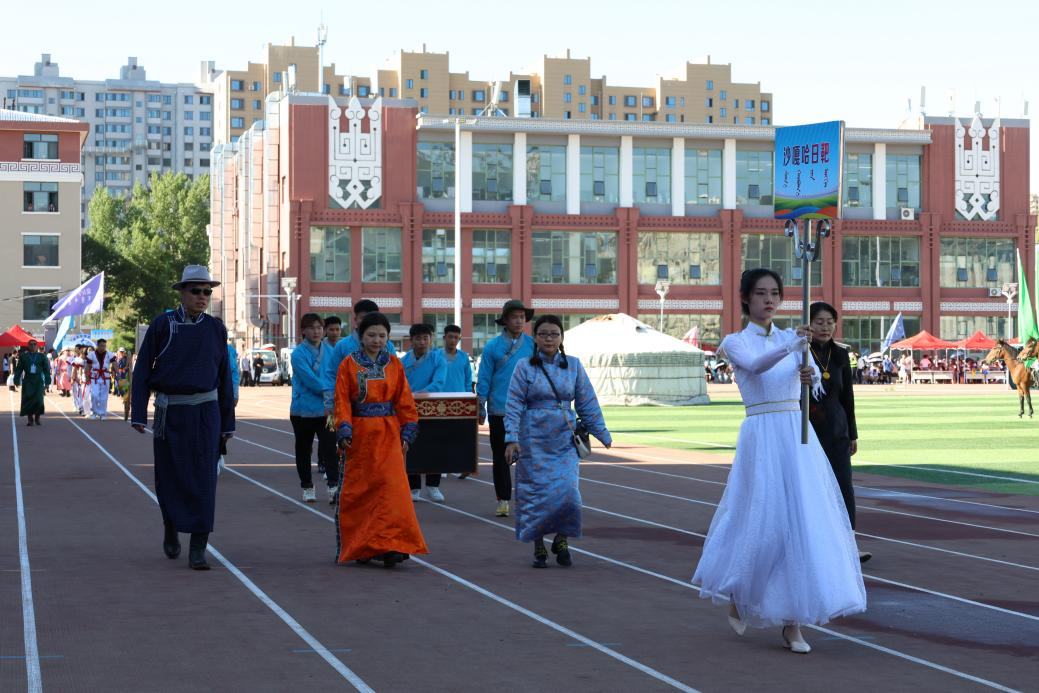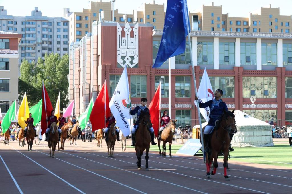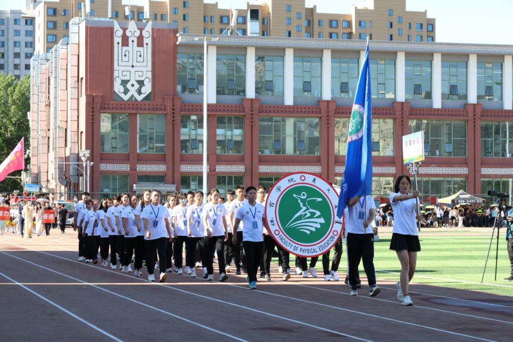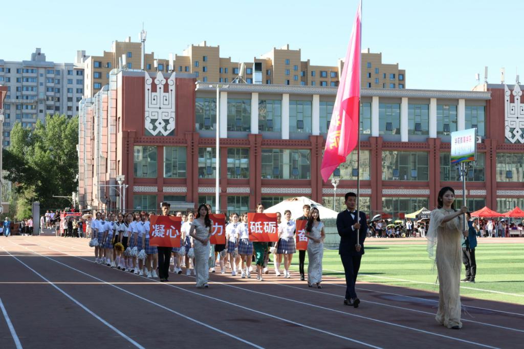 马背彩旗队、石榴籽小课堂方阵、传统武术队以及身着特色服装的搏克代表队、射箭代表队、布鲁代表队、喜塔尔代表队、蒙古象棋代表队、包根吉日格代表队、沙嘎哈日靶代表队、抢枢代表队等传统项目队和各学院代表方队依次入场。他们步伐健朗,整齐划一,喊着响亮的口号,充分展示了米乐官网师生积极向上的精神风貌。