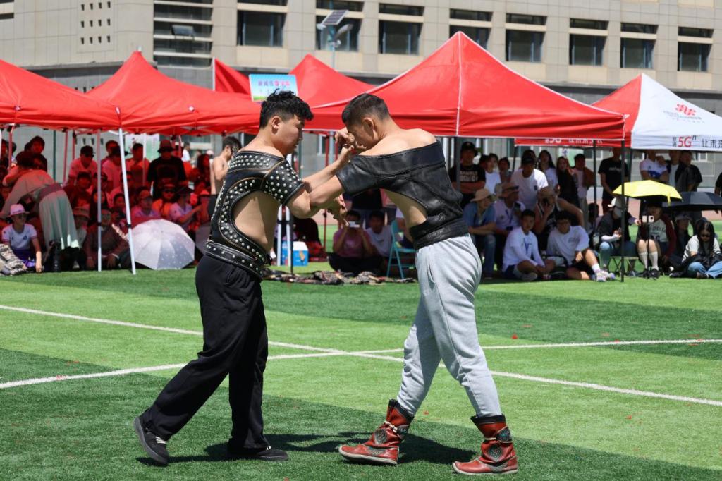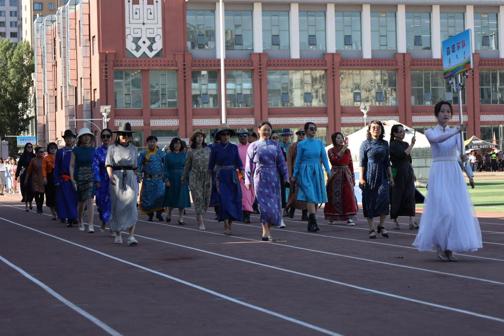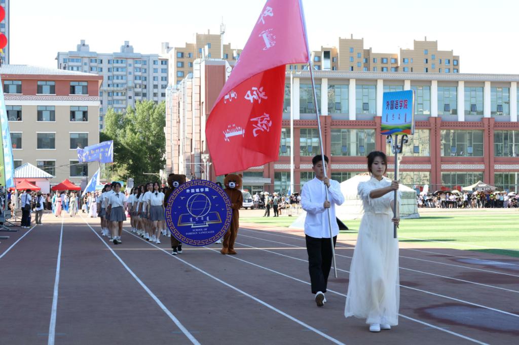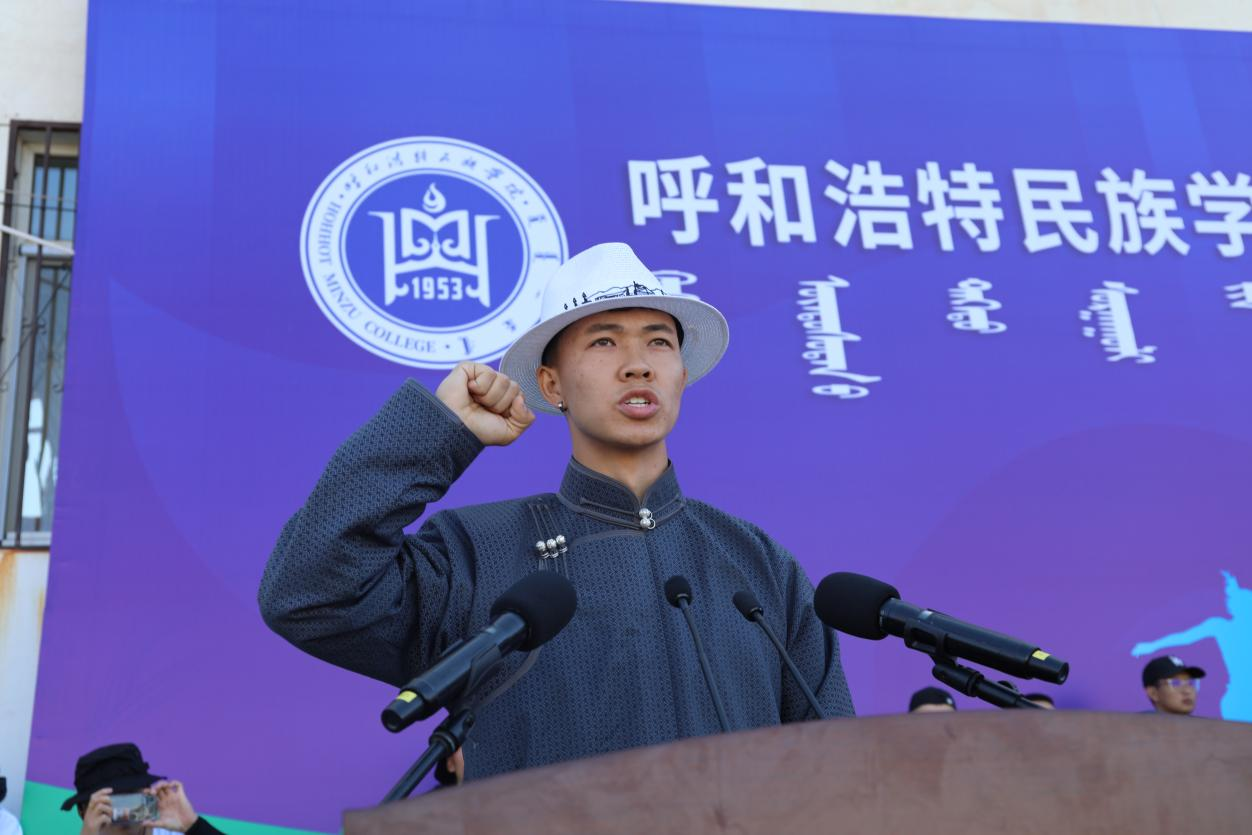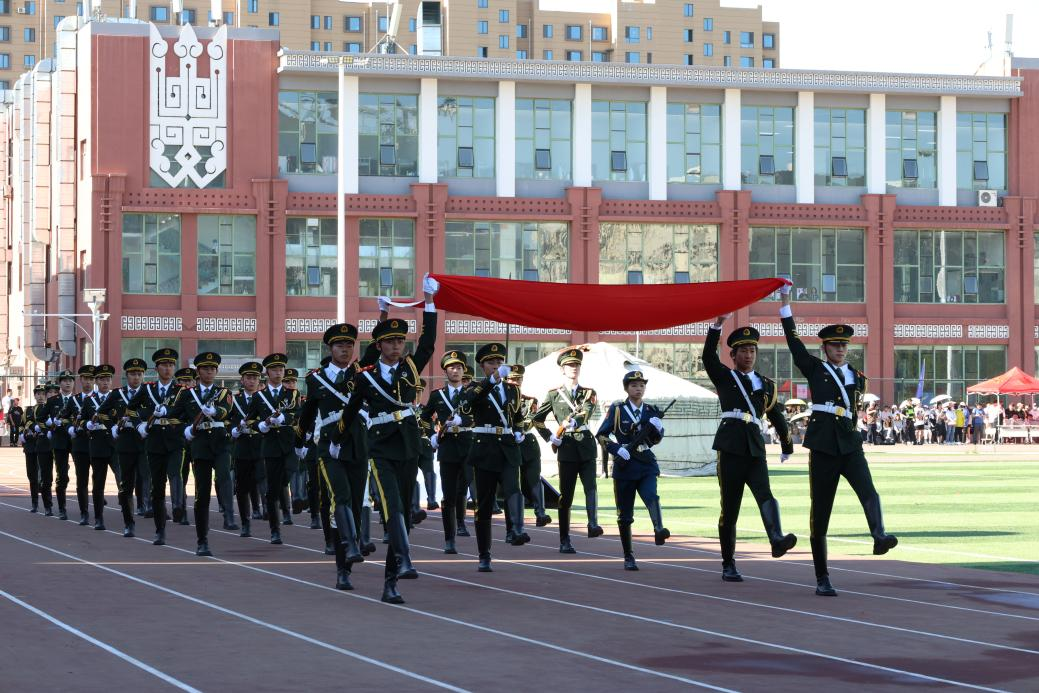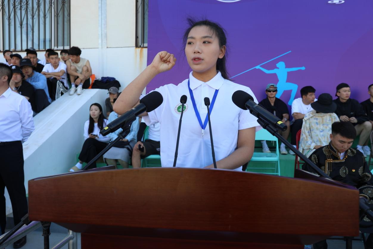 马背彩旗队、石榴籽小课堂方阵、传统武术队以及身着特色服装的搏克代表队、射箭代表队、布鲁代表队、喜塔尔代表队、蒙古象棋代表队、包根吉日格代表队、沙嘎哈日靶代表队、抢枢代表队等传统项目队和各学院代表方队依次入场。他们步伐健朗,整齐划一,喊着响亮的口号,充分展示了米乐官网师生积极向上的精神风貌。