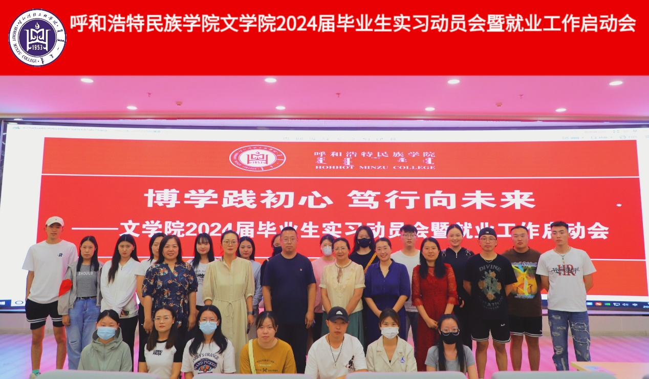 毕业实习是学生能够顺利就业、走上工作岗位奠定坚实基础的必备专业素养和职业技能。为圆满完成实习任务,践行教书育人的初心。7月6日下午,文学院召开“2024届毕业生实习动员会暨就业工作启动会”,文学院党总支书记李宏亮、副院长高娃、党总支副书记包冬梅、文学教研室主任乌兰哈斯及2024届毕业班班主任和学生代表共150余人参加。会议由文学院党总支副书记包冬梅主持。