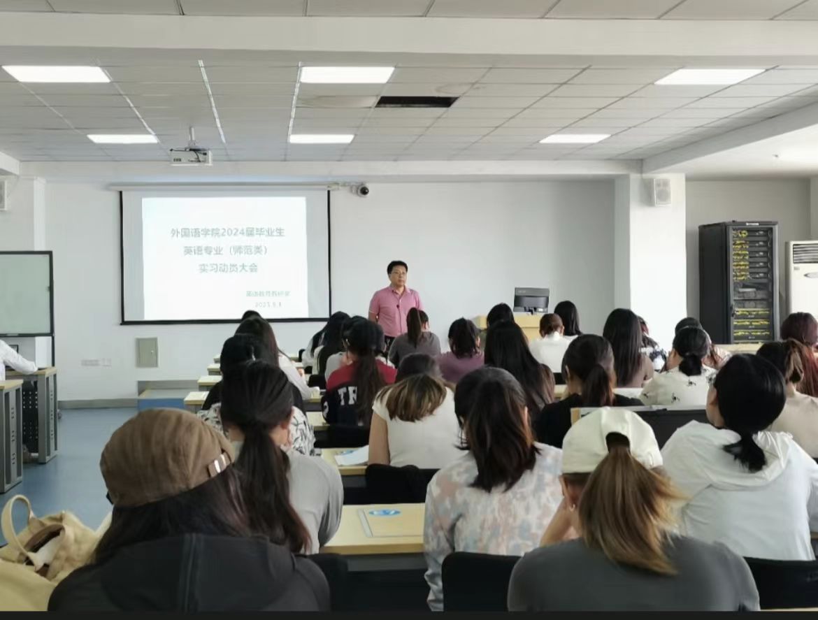 9月1日,外国语学院英语专业学生教育实习动员大会在都林楼606智慧教室顺利召开。会议由英语教研室主任乌优老师主持,学院副院长秦红喜、实习生指导教师代表萨仁格日乐老师、包丽娜老师应邀出席,外国语学院20级英语专业全体同学参加。