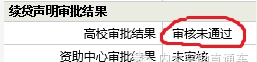 (四)续贷声明网上提交后,经学校审核,如字数不够或者内容不符,未能通过审核,则系统显示审核未通过。学生需要重新填写。重新填写时需要删除现有的申请,重新新增贷款申请。