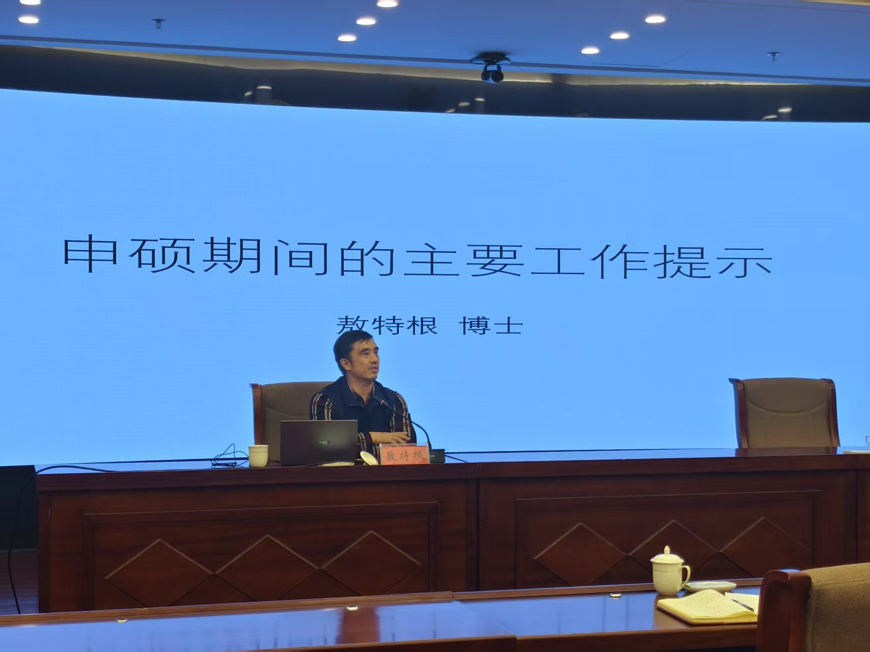 12月23日,米乐官网特邀呼伦贝尔学院党委委员、副院长敖特根,围绕“申硕期间主要工作”作专题讲座。