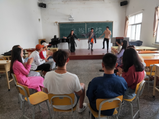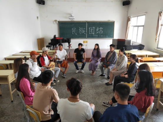 此次座谈会开场由来自新疆的2018级学生蒙克·道尔加拉、西藏的2018级学生次仁曲加和来自兴安盟的2017级学生包明利三位同学,现场用各自带来的乐器,马头琴、图布秀尔、口弦琴编曲合奏,为座谈会拉开帷幕。接着同学们依次发言介绍自己家乡的民族习俗、民族文化和民族乐器、音乐等,大家畅所欲言,互相了解,进一步通过座谈会增进了彼此感情。来自西藏的三位同学为了活跃气氛现场给同学们跳了家乡的舞蹈。