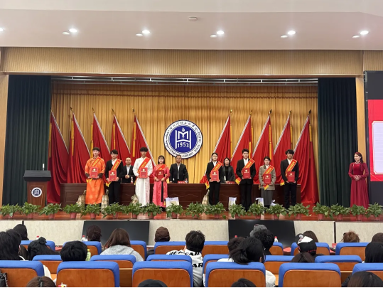 会上,国家奖学金获得者、2021级音乐学班赵庆鹏同学和2024级音乐表演2班白彩云同学分别作为新老生代表发言;青年教师王雪莹作为优秀班主任代表发言,希望同学们常怀感恩之心,培养高尚的道德情操,坚定目标、勇往直前,成为更优秀的自己。