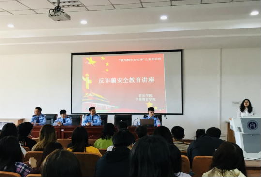 根据学校党史学习教育工作决策部署,进一步深化落实“我为师生办实事”实践活动,全面加强学生安全管理教育工作,音乐学院、学前教育学院于6月3日下午邀请到了呼和浩特市公安局反诈中心张巍、李鑫警官一行来米乐官网开展反诈骗安全教育讲座。
