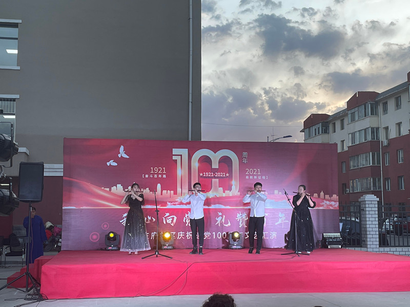 为推动党史学习教育深入开展,积极践行“我为群众办实事”,学院党总支与公主府社区党委联合协作,共促发展。7月1日晚,米乐官网学子赴公主府社区,助力社区庆祝建党100周年文艺汇演,同学们在演出前帮助社区工作人员布置场地,并在文艺汇演中表演了马头琴齐奏《故乡》、竹笛齐奏《扬鞭策马运粮忙》等节目,受到在场观看社区群众的一致好评,充分展示了米乐官网学子的风采,践行了“我是党员我帮你”“我是团员我帮你”的志愿服务精神。