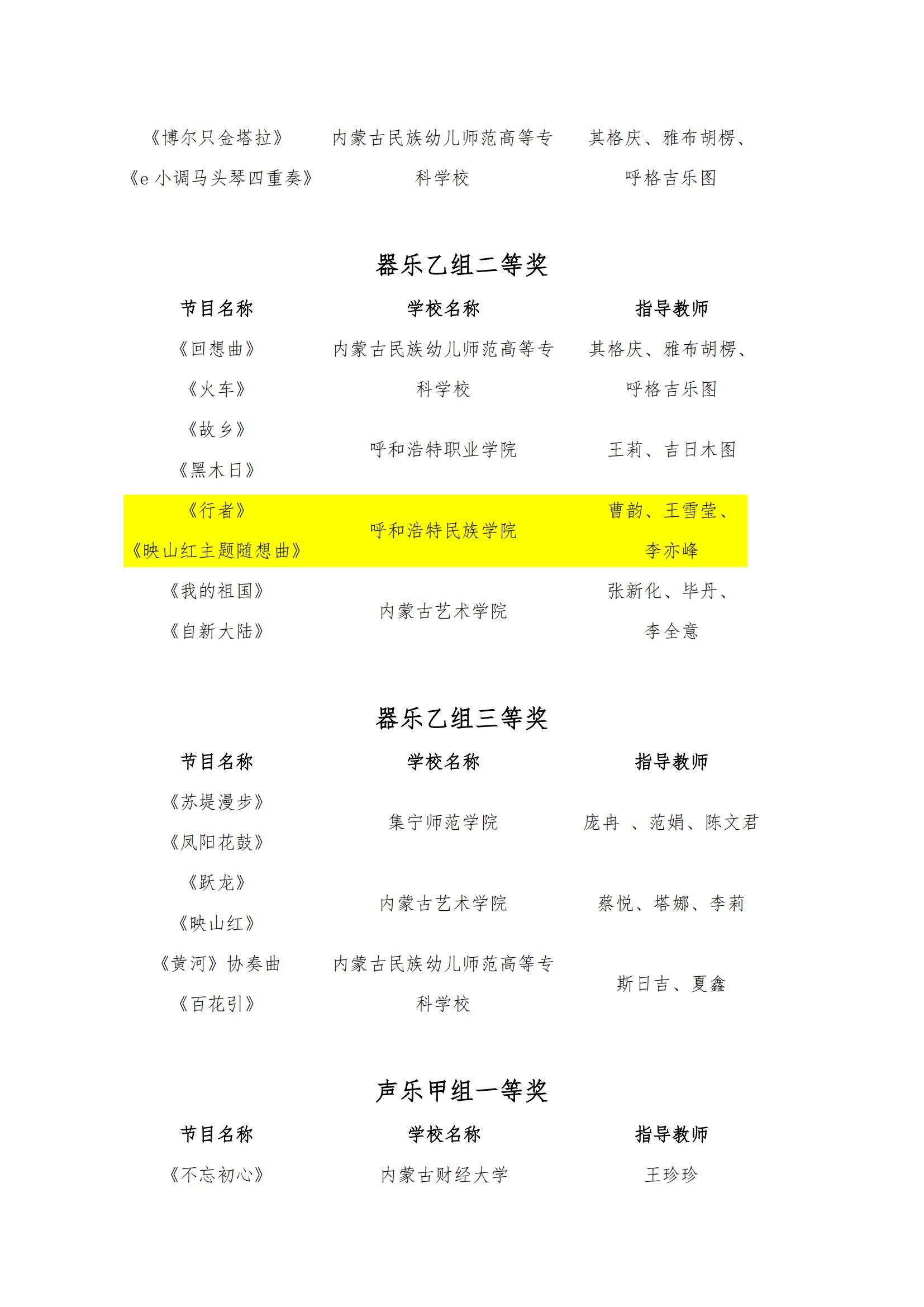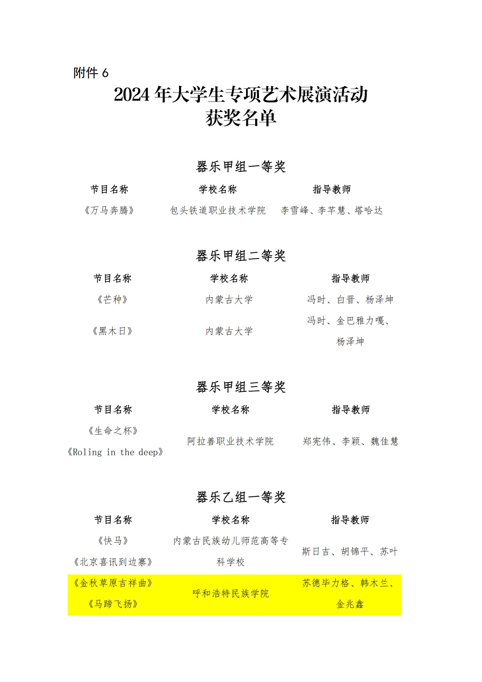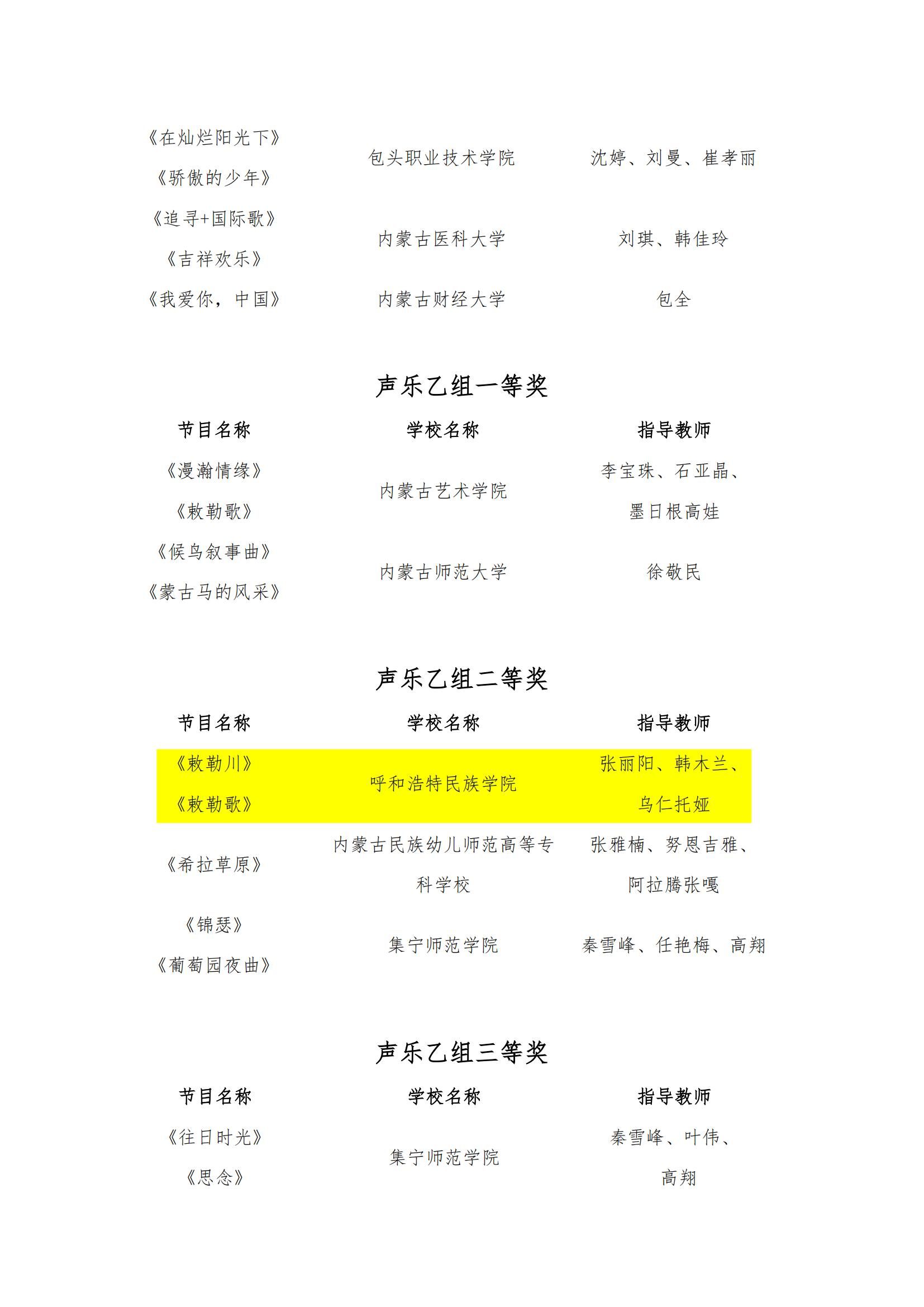 米乐官网教师苏德毕力格、韩木兰、金兆鑫指导的《金秋草原吉祥曲》《马蹄飞扬》作品荣获大学生专项艺术展演活动器乐乙组一等奖;曹韵、王雪莹、李亦峰指导的《行者》《映山红主题随想曲》荣获器乐乙组二等奖;梁秀梅参与指导的《共和国之恋》《我和我的祖国》荣获声乐甲组一等奖,《四季歌》《山楂树》荣获声乐甲组二等奖;张丽阳、韩木兰、乌仁托娅指导的《敕勒川》《敕勒歌》荣获声乐乙组二等奖。取得了米乐官网在全区艺术类展演活动上的新突破。