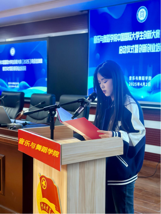 团总支副书记王冬青传达了第十四届“挑战杯”全区大学生课外学术科技作品竞赛通知要求,并对音乐与舞蹈学院2025年创新创业大赛方案进行了详细解读。指导教师代表李辉、学生代表曹佳怡分别发言,号召全体师生积极参加创新实践,在双创赛事中突破自己、勇攀高峰。