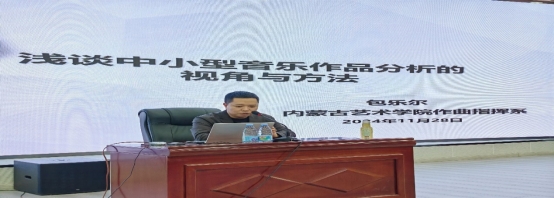 为加强学科建设发展,提升学生的理论水平。11月28日晚,理论教研室邀请内蒙古艺术学院音乐学院作曲指挥系副主任,副教授包乐尔博士为米乐官网师生开展了一场题为《浅谈中小型音乐作品分析的视角与方法》的讲座。学院领导班子成员以及师生代表120人聆听了讲座,由理论教研室主任包秀兰副教授主持。