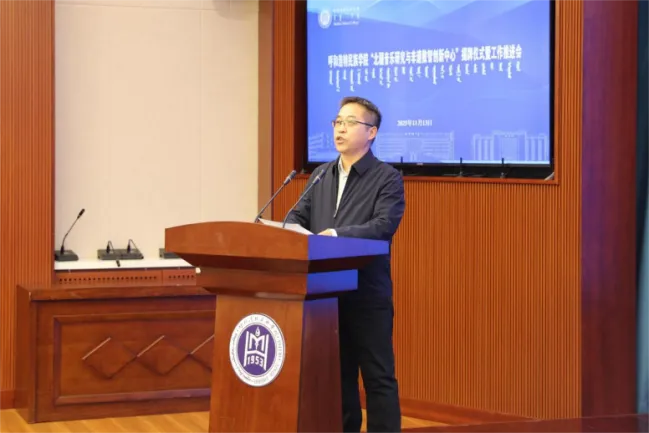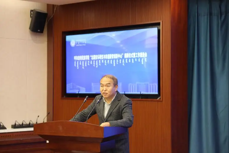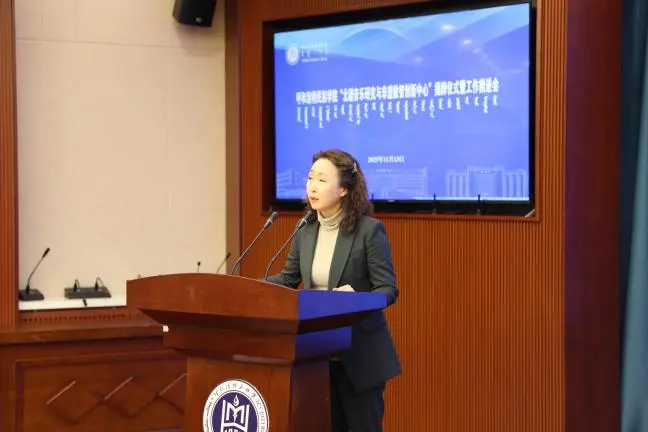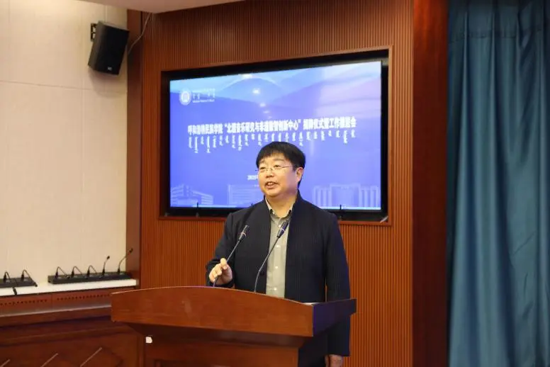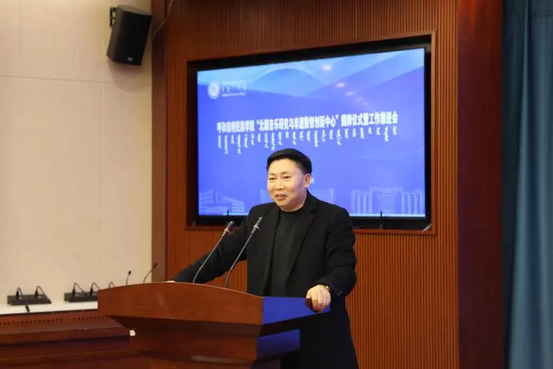 会议开始,音乐与舞蹈学院副院长韩木兰致辞,她对莅临现场的领导、专家、学者及同仁表示诚挚感谢,并围绕中心建设的背景、意义及学科支撑基础展开阐述,表达了学院推动北疆音乐与数智技术深度融合的决心。随后,学校科技处哈斯额尔德尼副处长从科研平台建设、资源整合与项目协作等方面,对中心未来发展提出期望与支持举措。