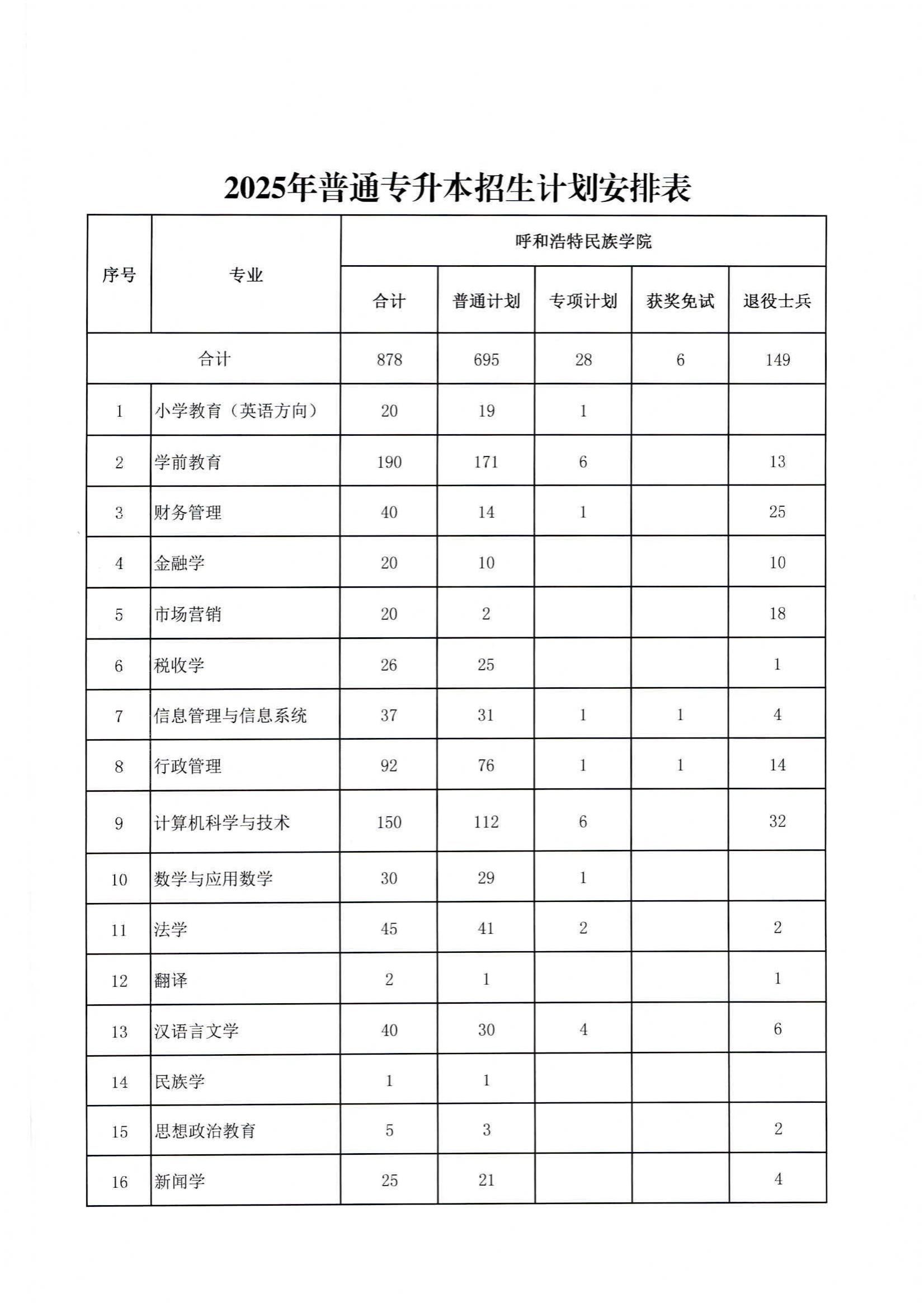 MILE米乐集团2025年普通专升本招生计划