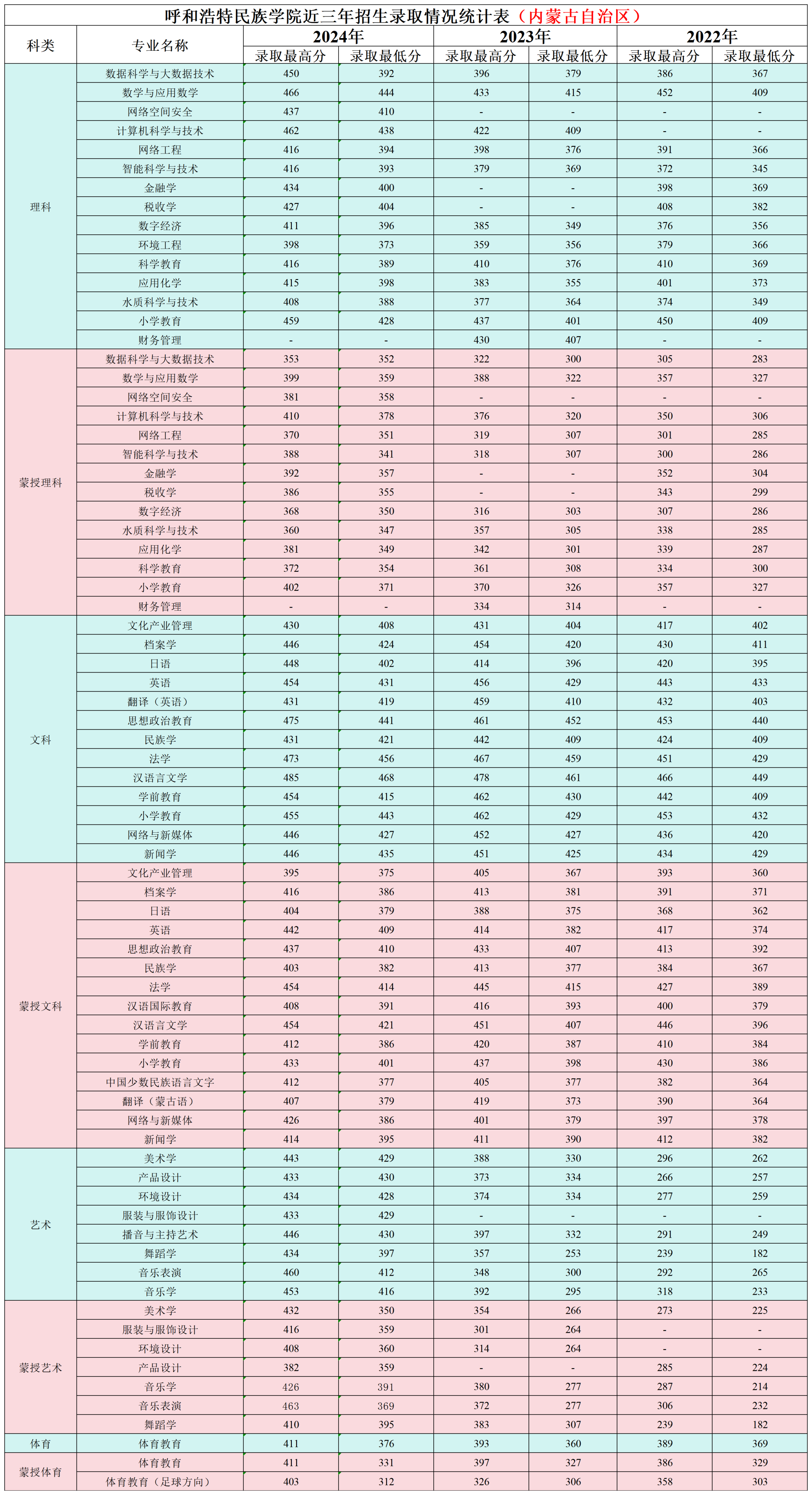 MILE米乐集团近三年招生录取情况统计表(内蒙古自治区)