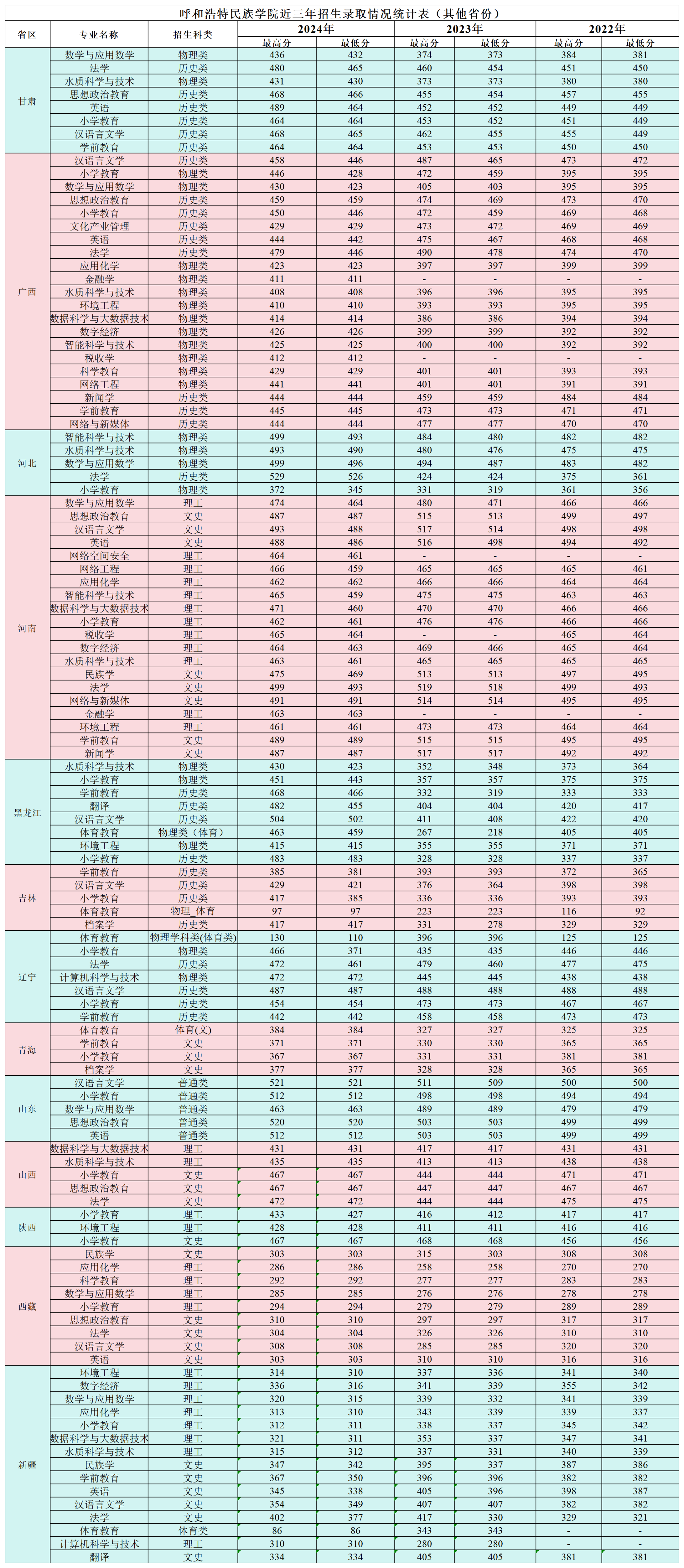 MILE米乐集团近三年招生录取情况统计表(其他省份)