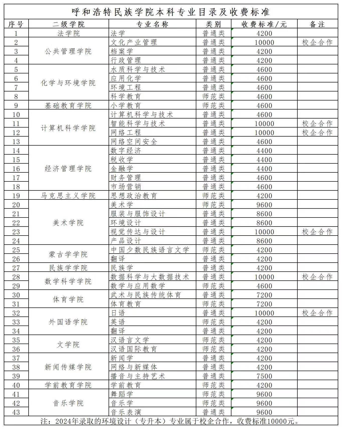 MILE米乐集团2024年专业目录及收费标准