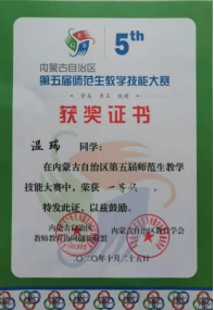 图3 内蒙古自治区第五届师范生教学技能大赛一等奖